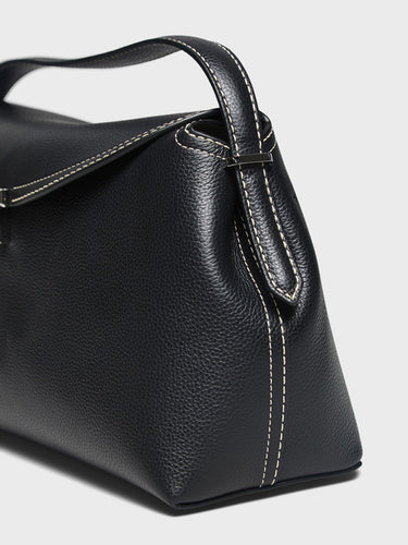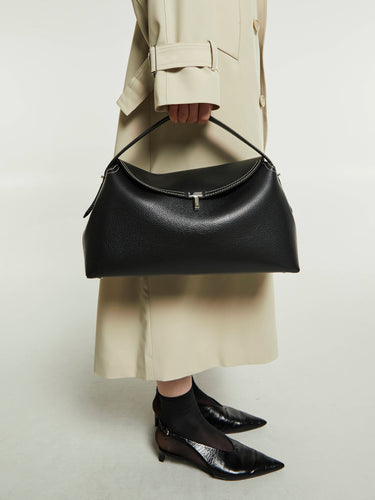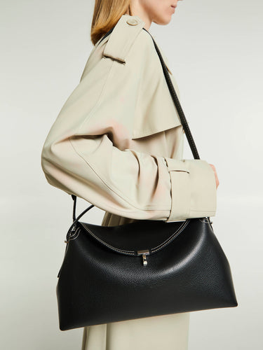 The T-Lock Top Handle Bag is handcrafted in Italy from smooth leather, it features a curved top, golden metal T-Lock and protective feet, plus two leather slip pockets inside. Carry it using the top handle or adjustable shoulder strap for different styling options.