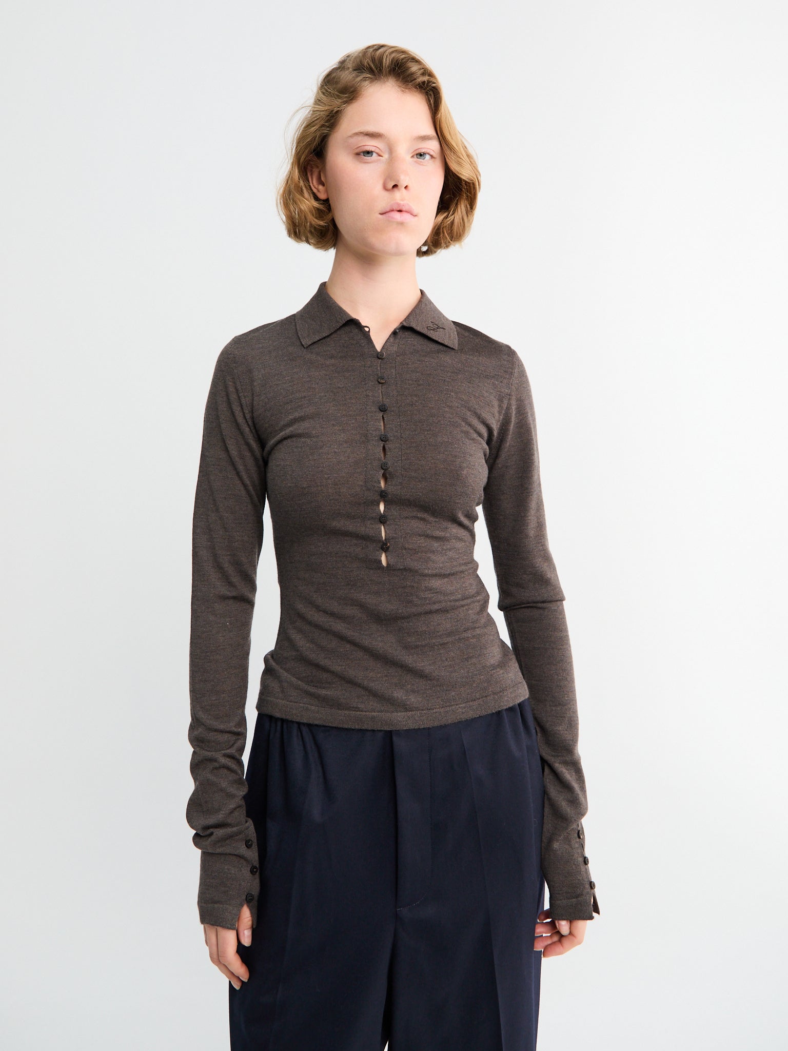 Le Polo Merino ML in Dark Brown