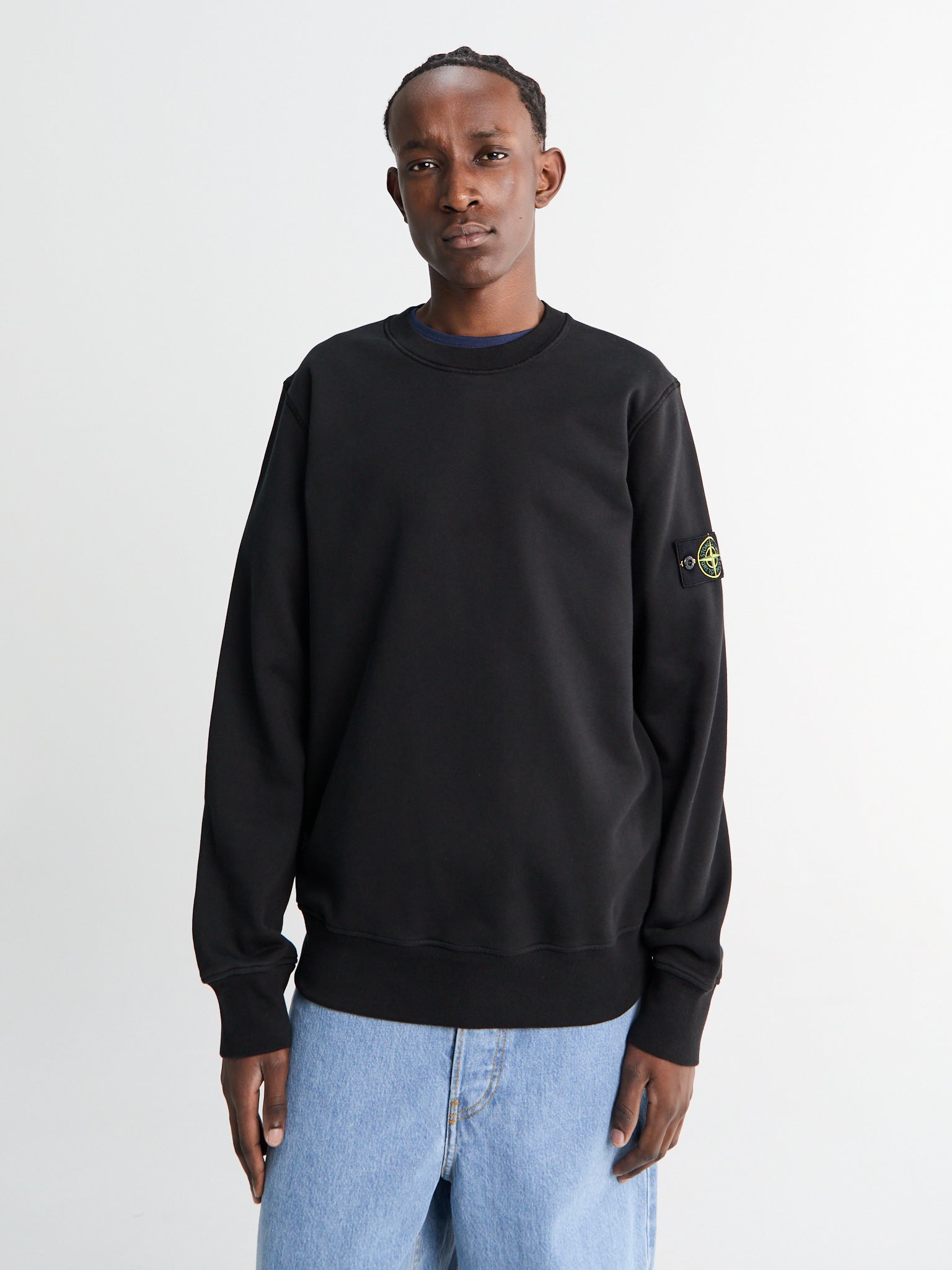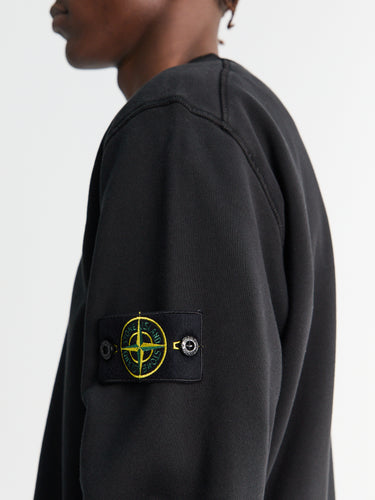 Crewneck sweatshirt crafted from organic cotton fleece. Features overlock seams, a lined back yoke, and elasticated ribbed trims. Garment-dyed and finished with the Stone Island badge on the sleeve.