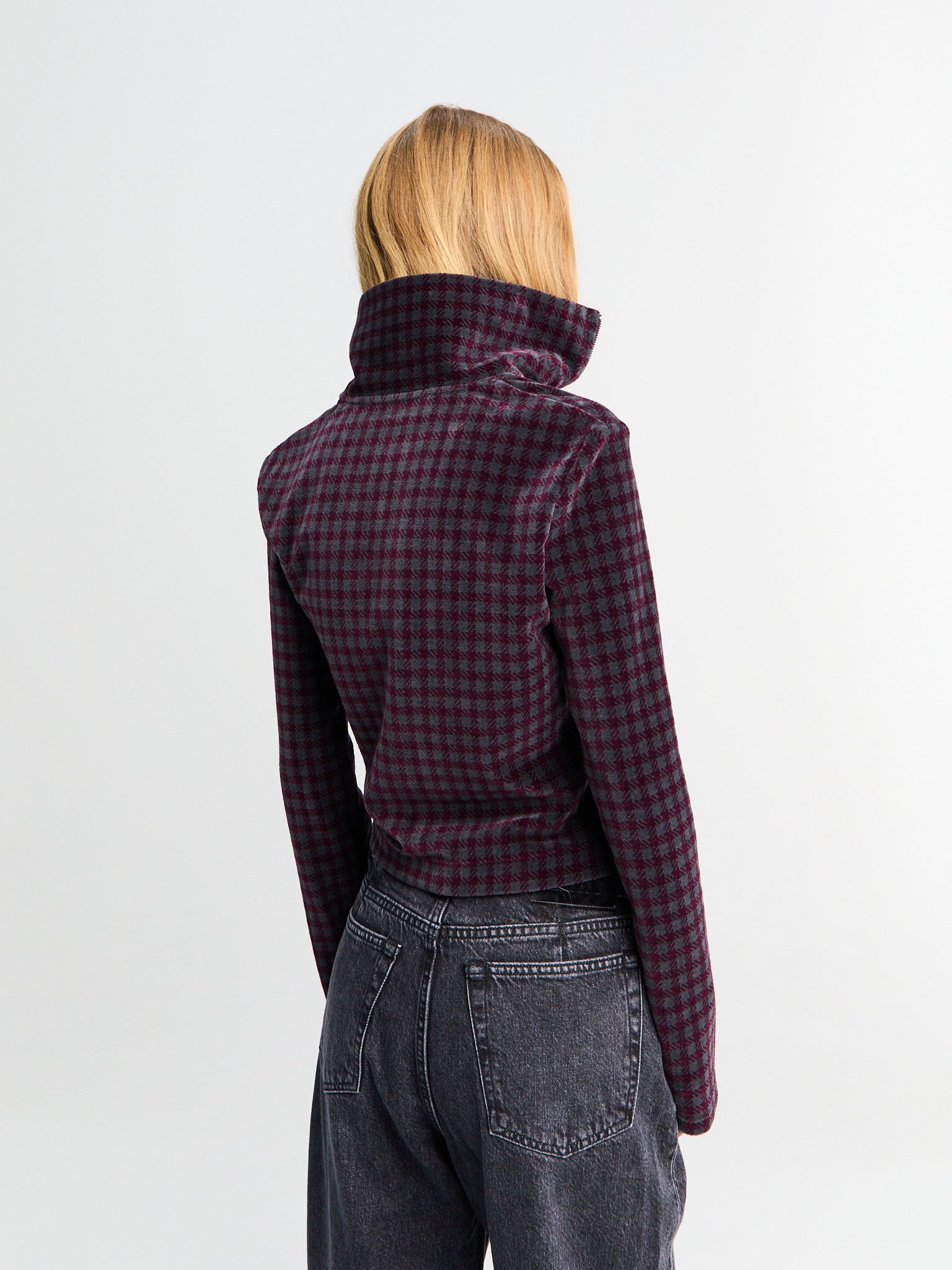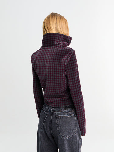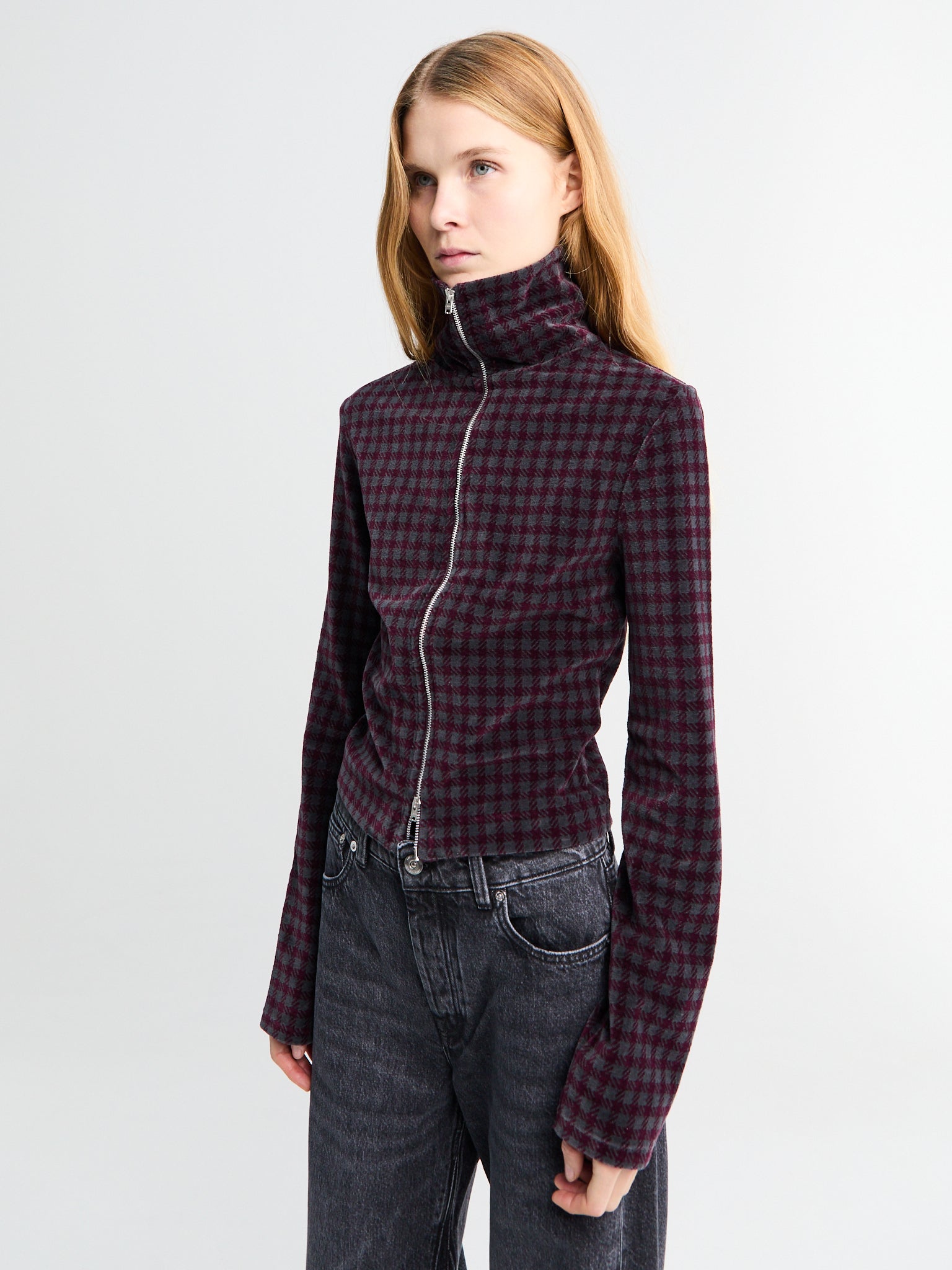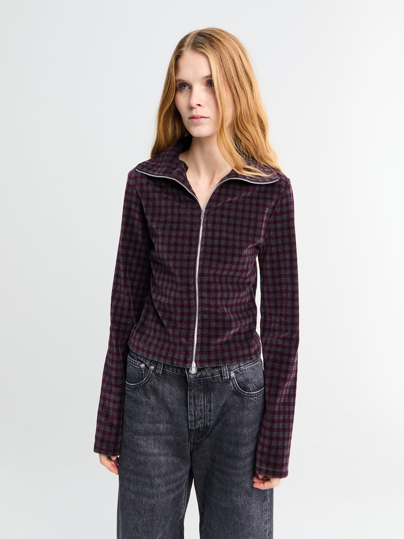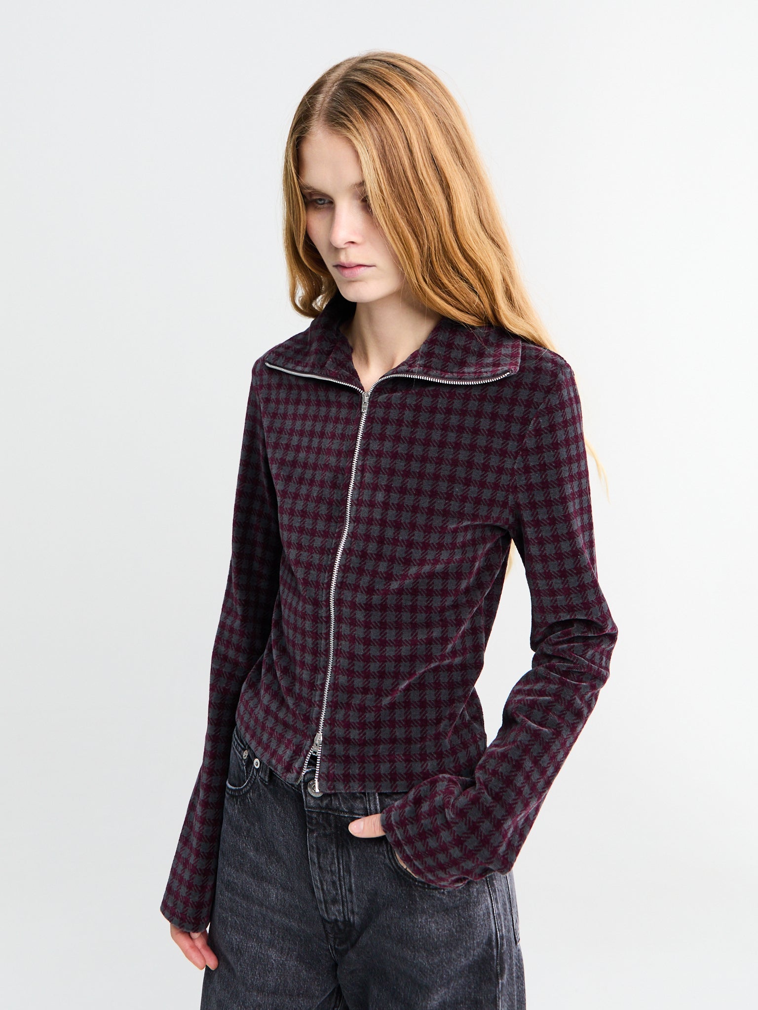 Slim Zip Longsleeve in Merlot Houndini Check Velour