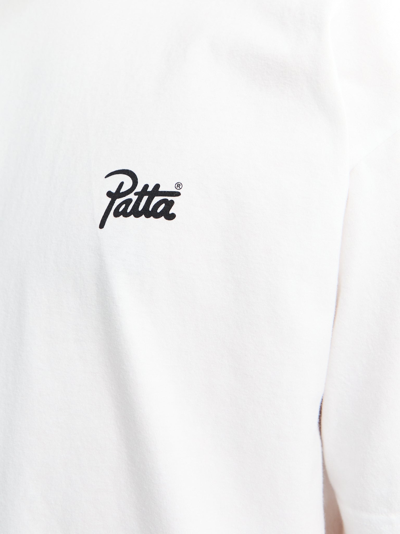 This white Tough Love T-shirt is crafted from soft, durable cotton for comfort and lasting wear. Its loose fit ensures unrestricted movement. The front displays a subtle black embroidered Patta logo, while the back showcases a bold graphic design