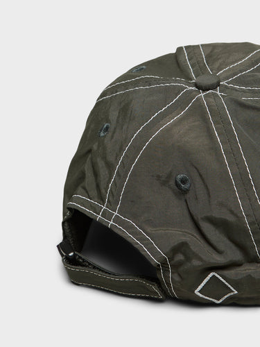 Denne kasket har et seks-panelers design fremstillet i vævet nylon med vandafvisende egenskaber. Den er udstyret med svedbånd og en velcrolukning bagpå med elastikrem for en justerbar pasform. På fronten prydes den af sæsonens broderede artwork, mens bagsiden har et reflekterende logobroderi.