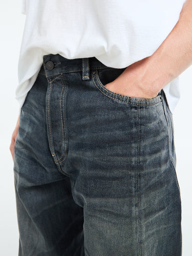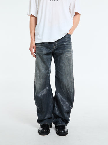 2006-jeansene er designet med en afslappet pasform, lav talje og brede, buede ben i fuld længde. De er lavet i stift denim og har en blank, coated finish. Fremstillet med klassisk femlomme-design og lynlåslukning.