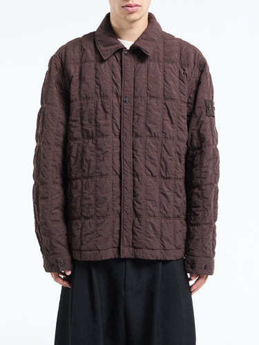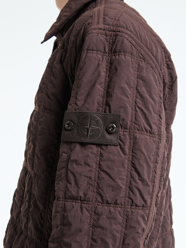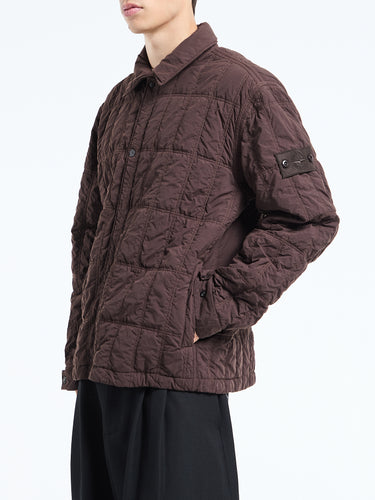 Denne mørkebrune jakke har et monokromt design med et matchende Stone Island-badge. Den er lavet i et særligt nylonmateriale, der føles blødt som bomuld og samtidig er slidstærkt. Jakken er desuden behandlet med en coating, der gør den afvisende overfor vanddråber
