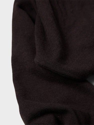 Hovedtørklædet i farven aubergine er fremstillet af fin, let merceriseret uld, der giver en diskret glans. Den bløde tekstur tilbyder behagelig varme og komfort, hvilket gør det til et elegant supplement til dit outfit