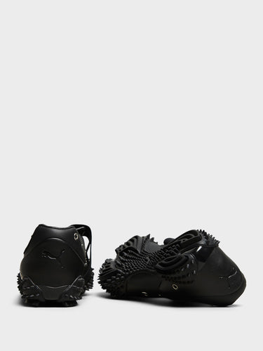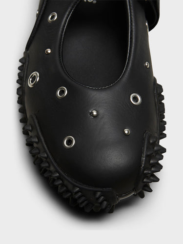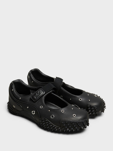 Mostro Fey Studs i sort kombinerer det markante design fra den originale Mostro med en enkel Mary Jane-silhuet. Med sin lavprofilerede form og unikke sål med pigge giver skoen et karakteristisk udtryk, der balancerer stil og subtilitet