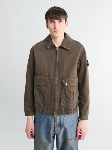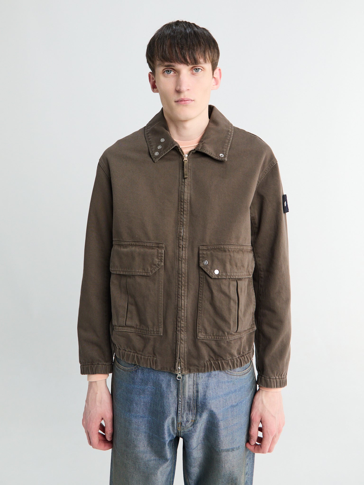 Denne bomberjakke er lavet af vintagevasket bomuldslærred og har en struktureret krave samt en tovejs lynlås foran. To påsyede lommer tilføjer et funktionelt touch, mens en elastisk kant sikrer en behagelig pasform. Designet er afsluttet med det karakteristiske Stone Island kompas-mærke på venstre ærme.