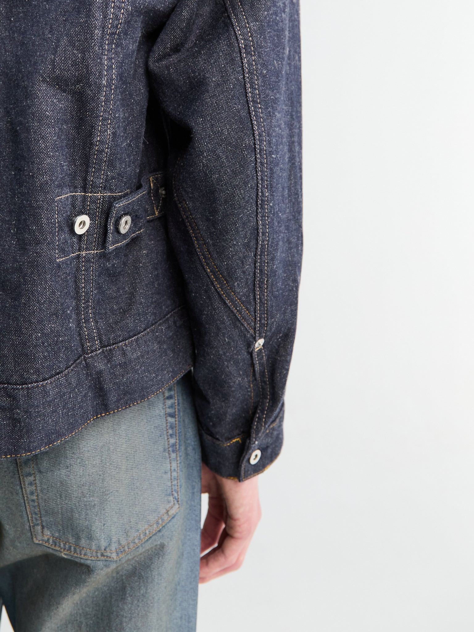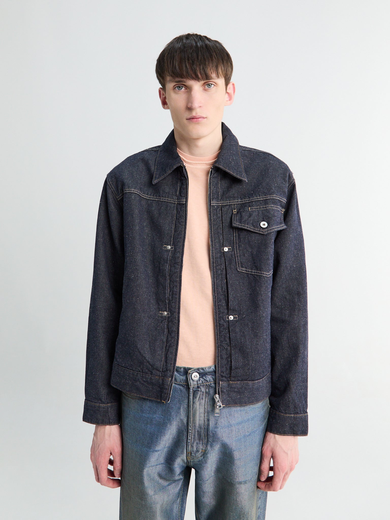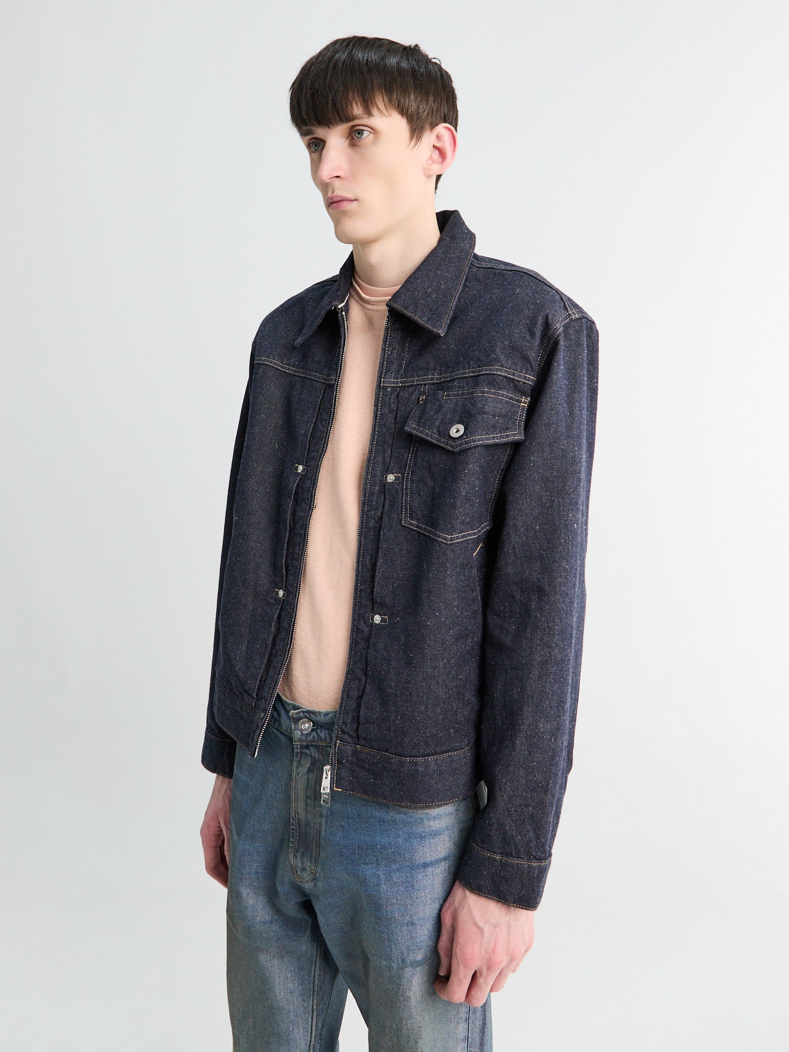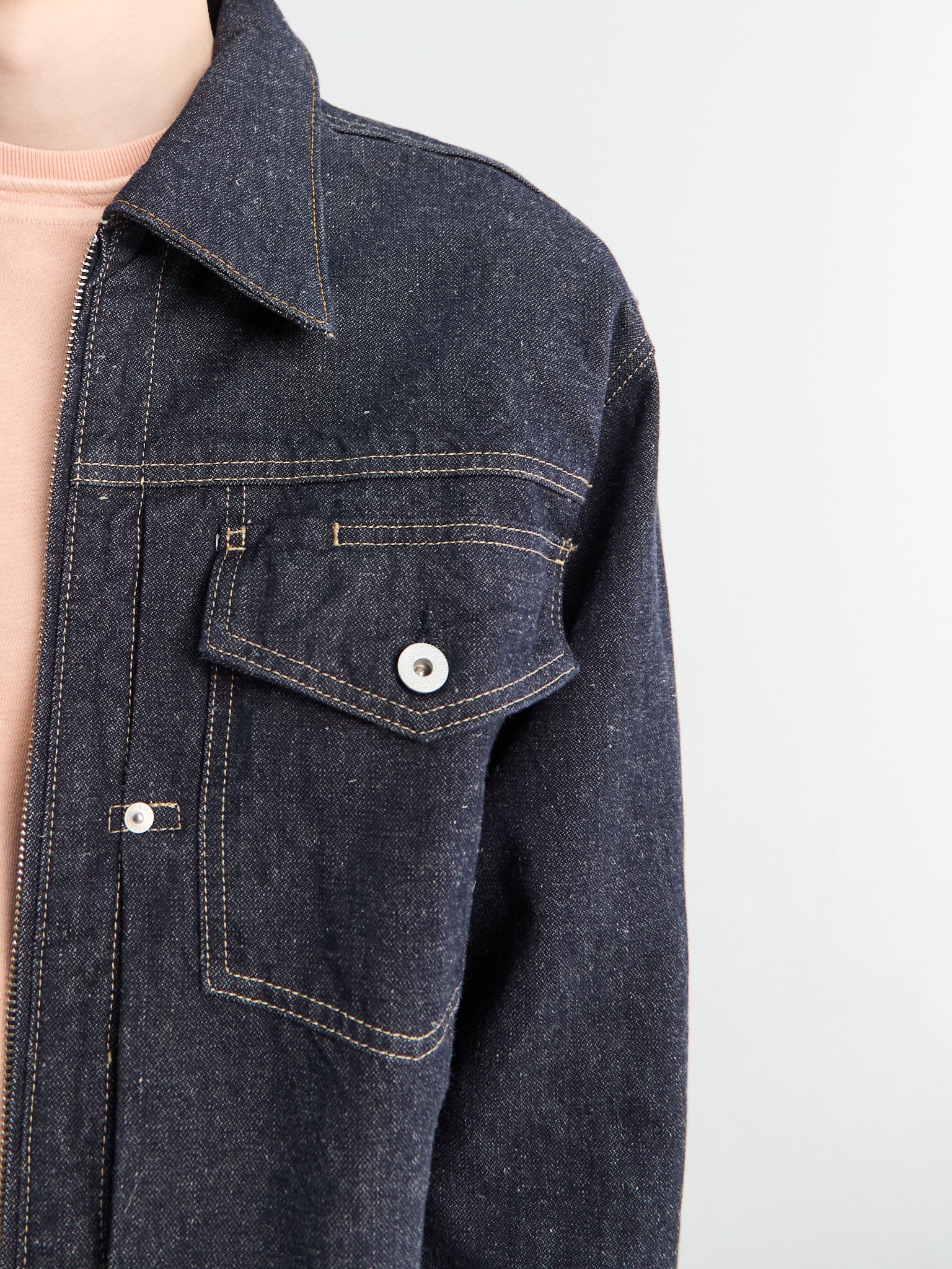 Indigo broken twill jakke i bomuld og hør. Lettere end traditionel denim med en distinkt tekstur. Regulær pasform med tidløse detaljer.