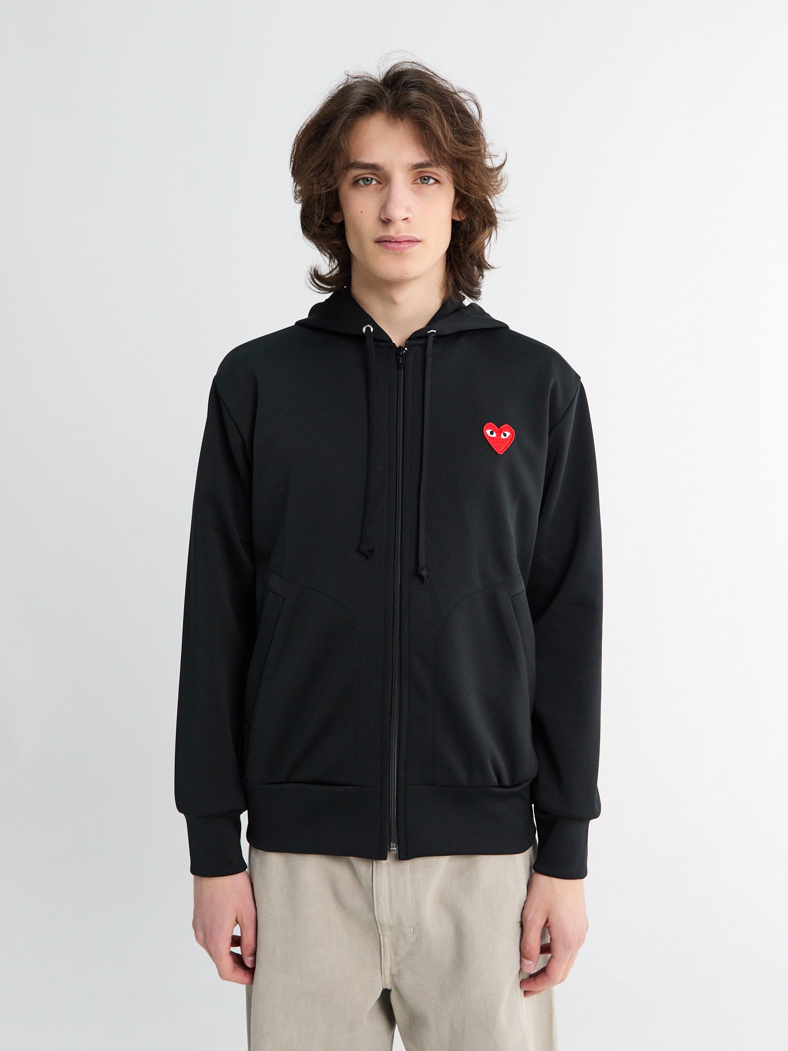 Denne Comme des Garçons PLAY sweatshirt er lavet i Japan og har det signaturapplikerede røde hjerte, afsluttet med en ribbet kant og manchetter.