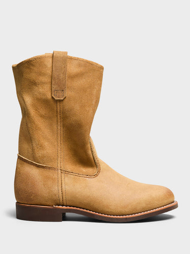 Hawthorne Muleskinner er lavet af robust ruskindslæder, værdsat for sin holdbarhed og sin evne til at udvikle en karakteristisk, rig patina med brug.