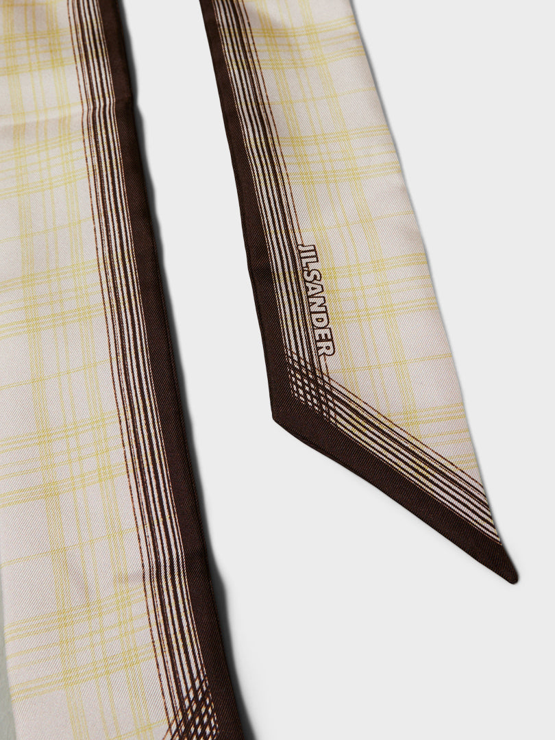 Dette slanke twilly tørklæde er fremstillet af ren silke og defineret af et minimalistisk ternet mønster. Designet er afsluttet med et diskret Jil Sander logo print i hver ende, hvilket tilbyder en subtil og raffineret detalje.