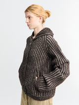 Level Hood Sweater i Vanise Brown Stripe Isels Wool