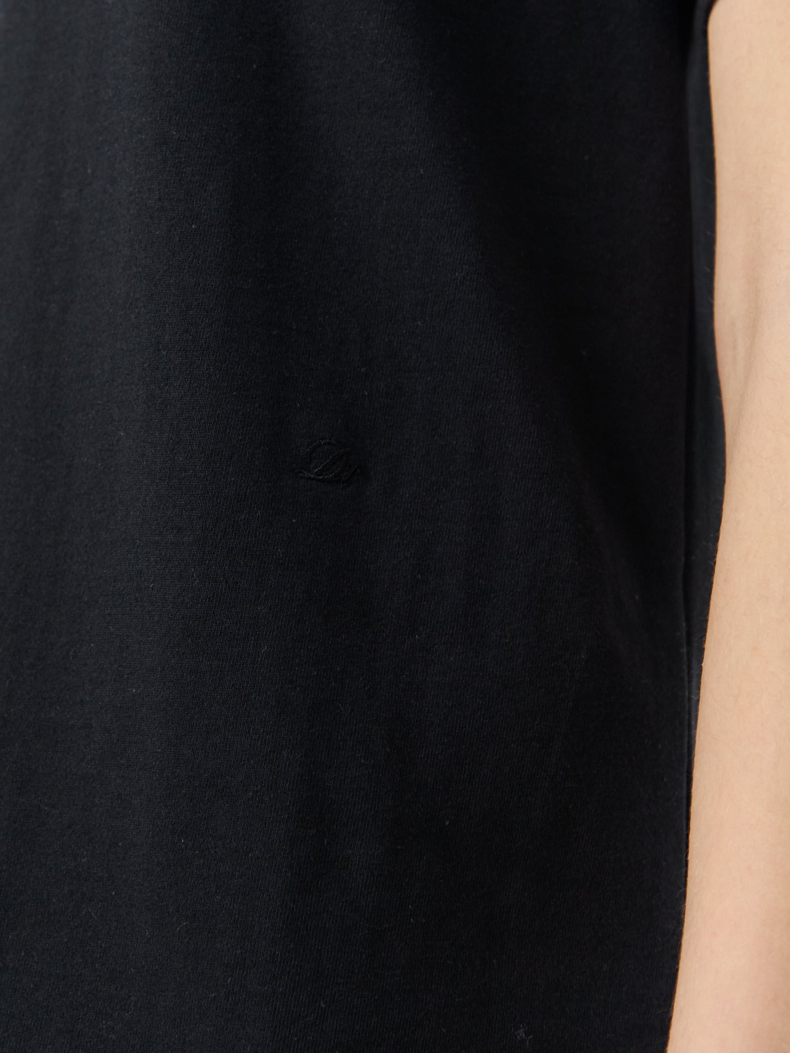 Klassisk sort t-shirt med en boxy silhuet og ribkantet krave.