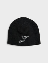 Le Bonnet Espiral hue i mørkegrå er en stilfuld ribstrikket hue med et diskret broderet monogram, der tilføjer et strejf af elegance. Fremstillet for at give en fleksibel og behagelig pasform.