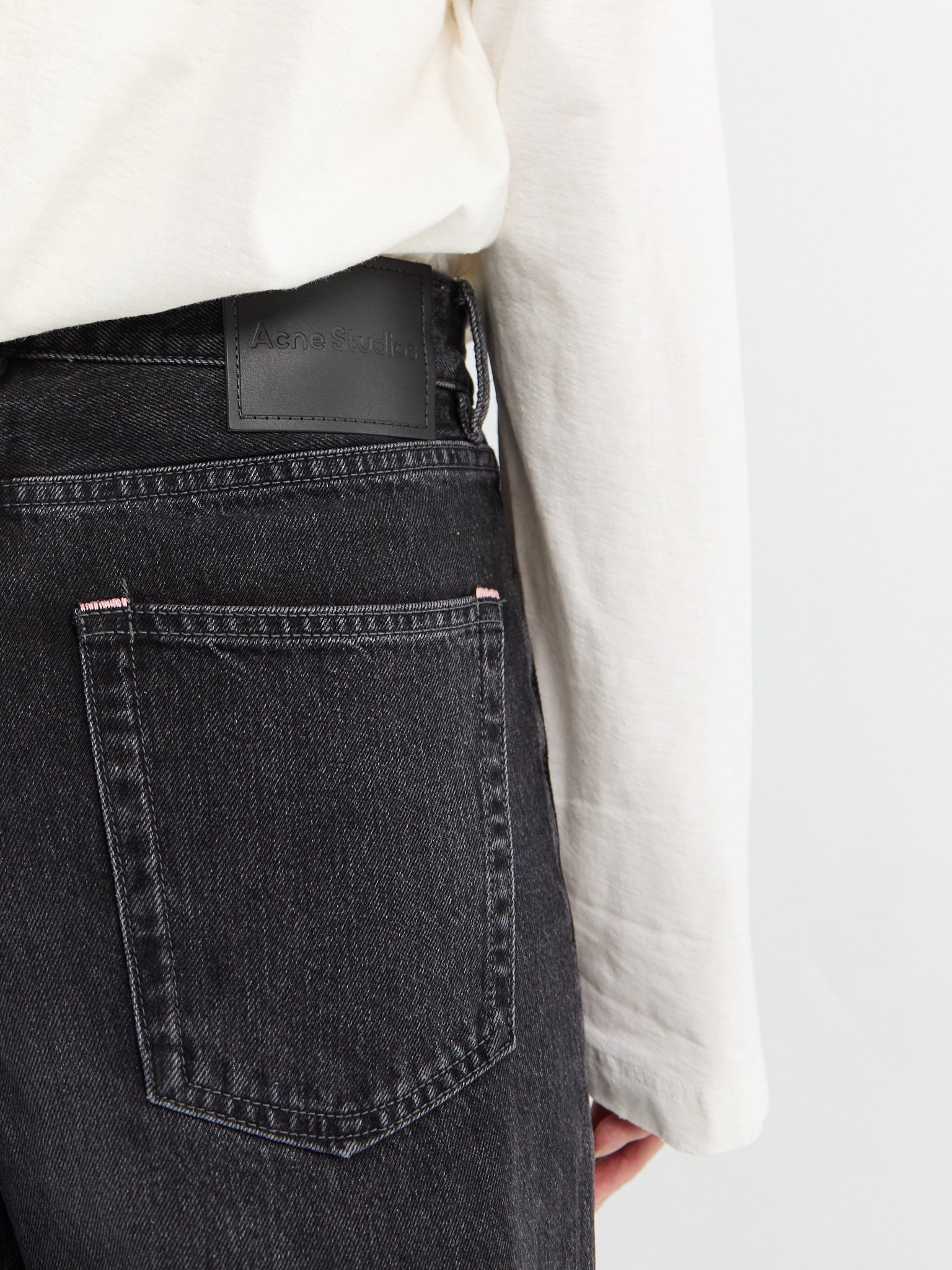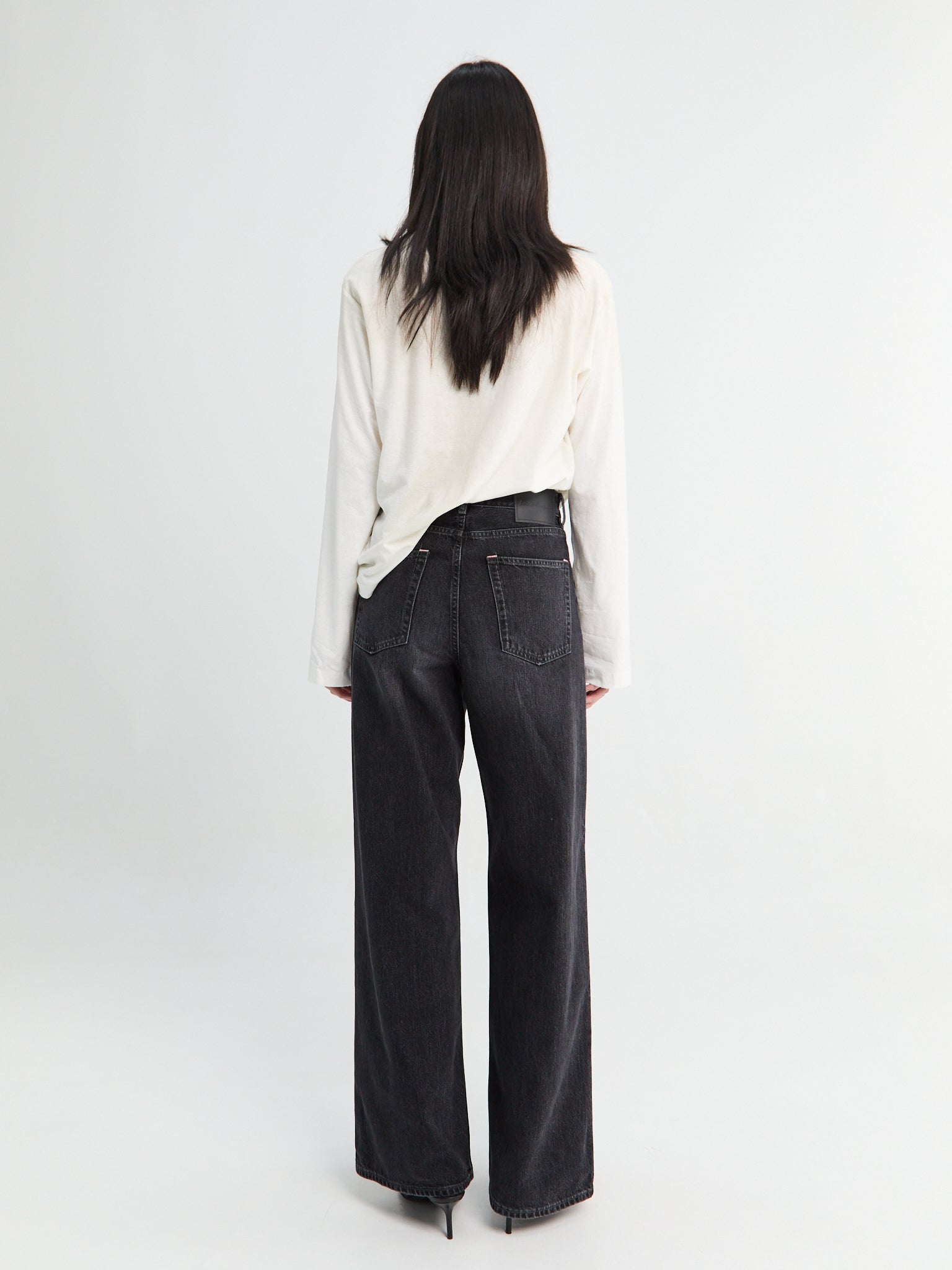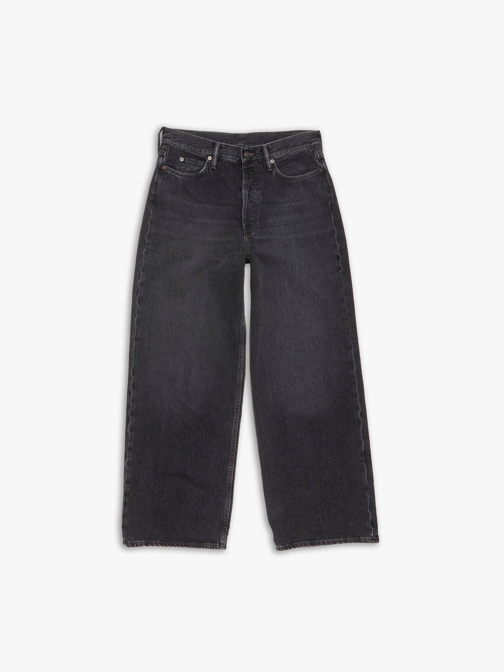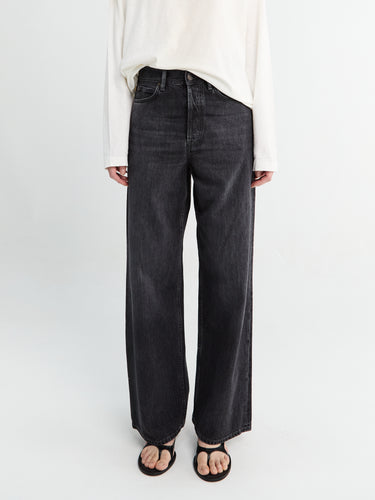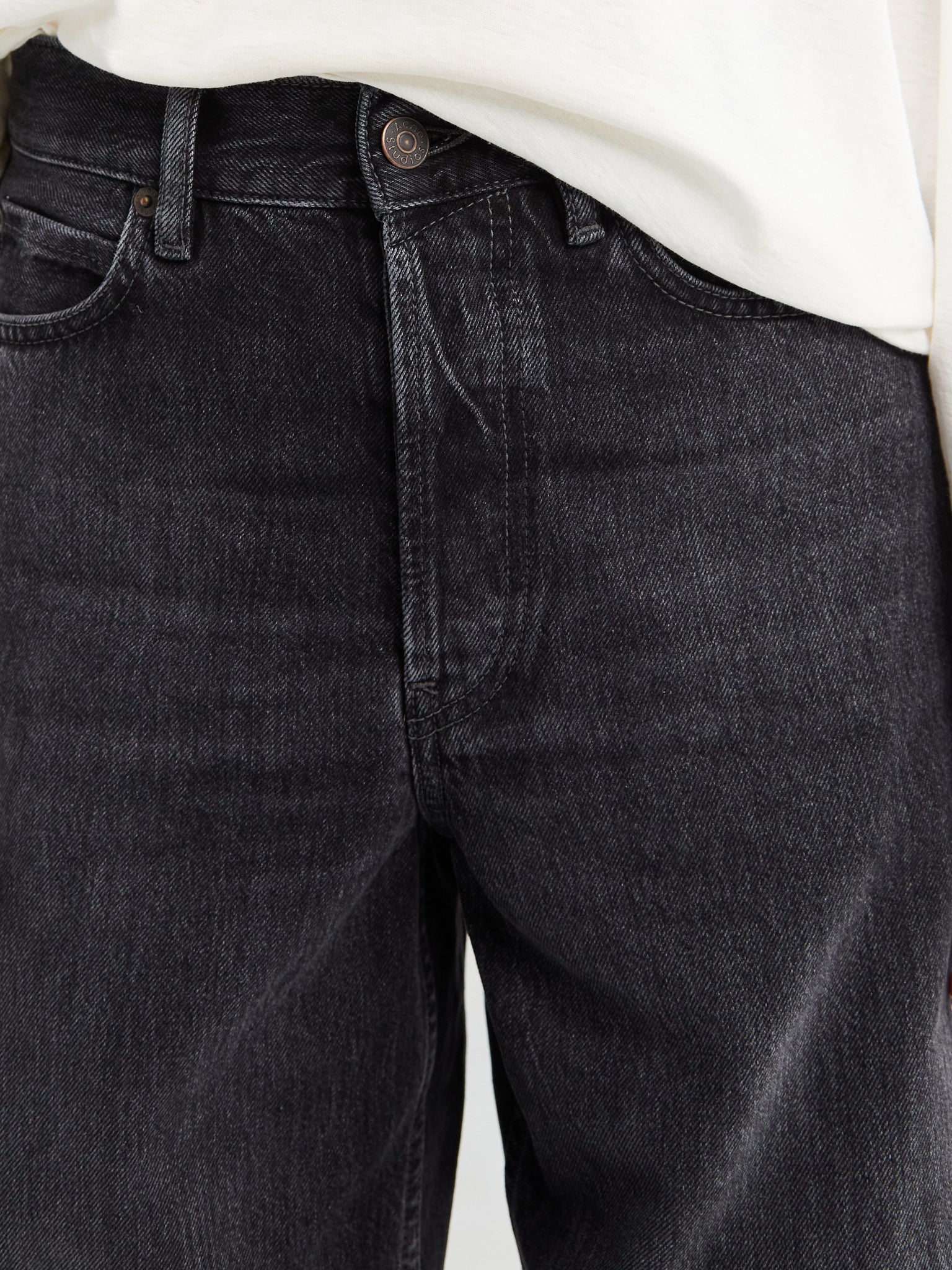 Bomuldsdenim med lav-mellem talje i vintage sort. Afslappet pasform over hoften med et vidt, lige ben. Klassisk design med fem lommer og diskret falmet look.