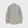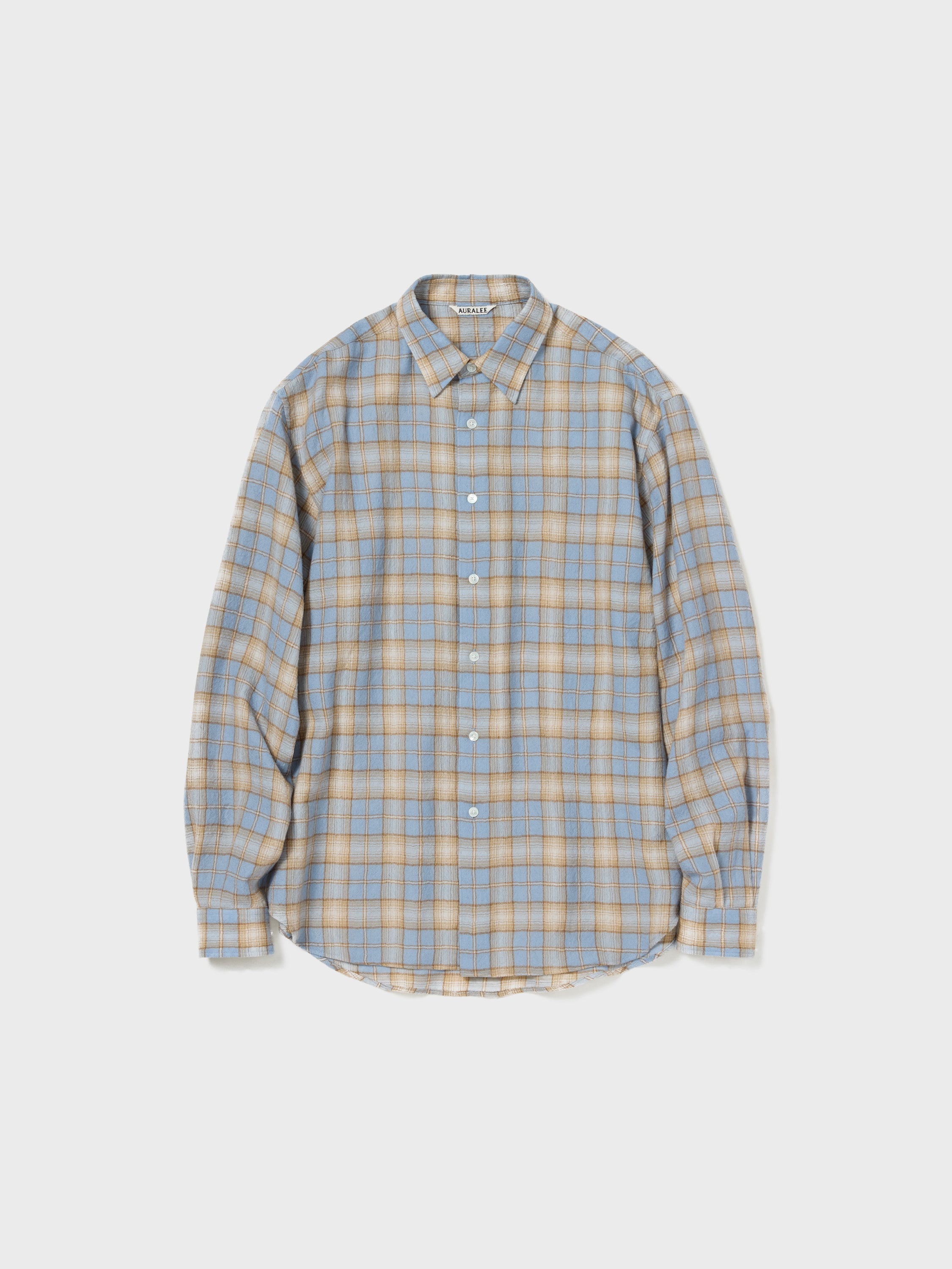 En delikat uld kvalitet vævet af ultrafine kæmmede garn, spundet med en raffineret teknik for at opnå en let og luftig tekstur. Har et subtilt ternet mønster i lyseblå og beige.