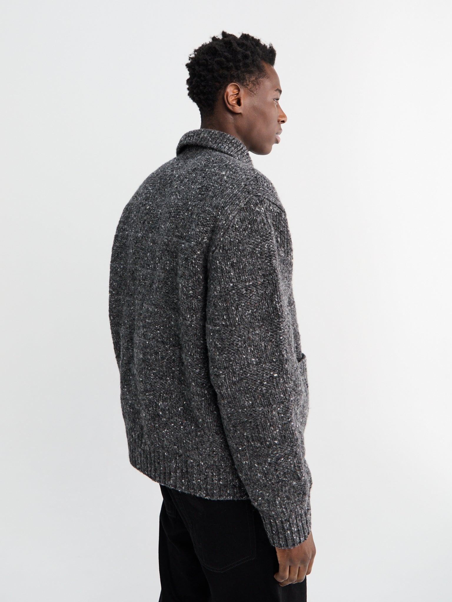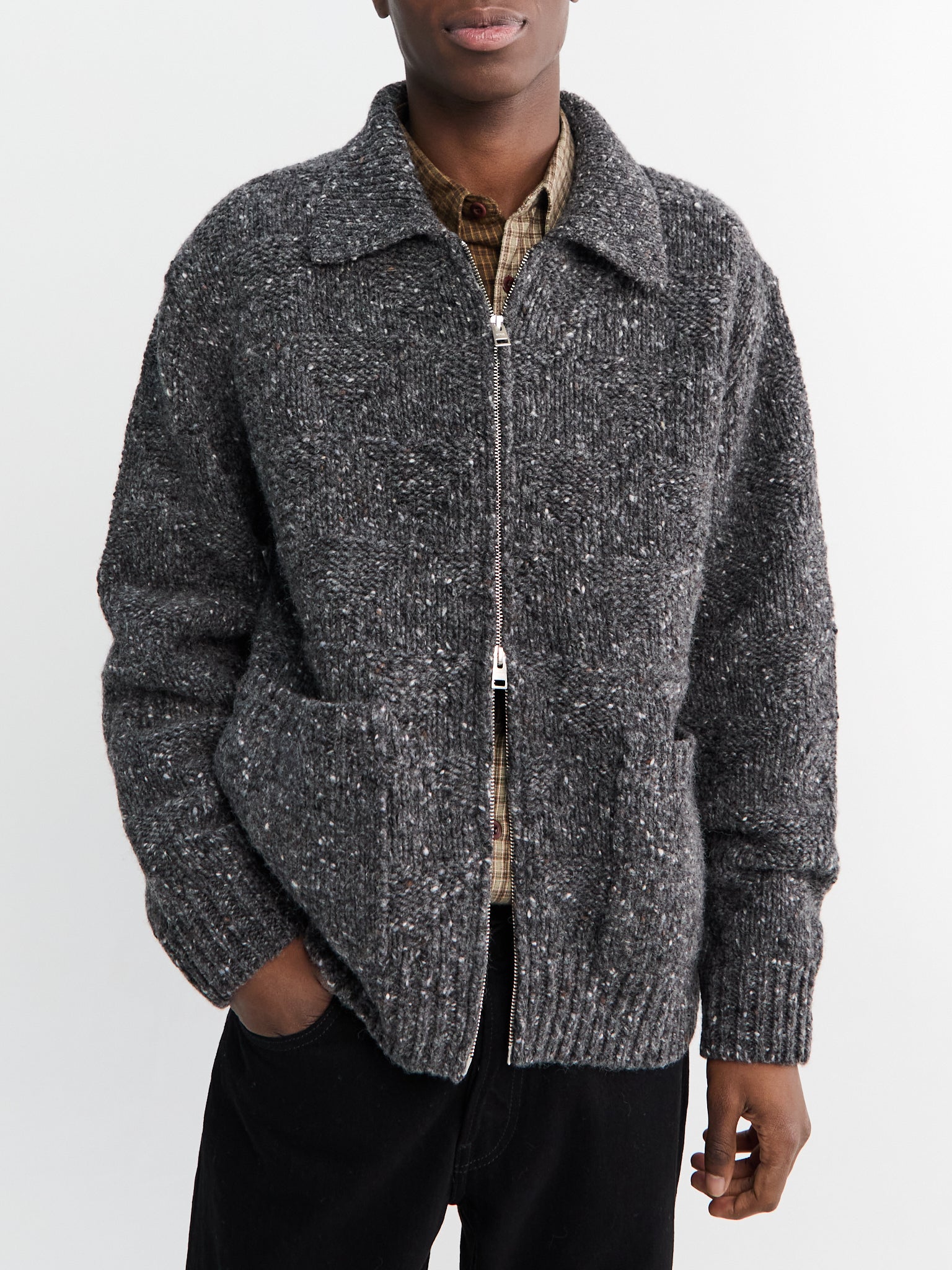 jakken har en afslappet pasform er fremstillet af ren ny uld. Den har et diamantformet quiltet mønster, isatte ærmer, gennemgående knaplukning, fuldstrikket krave og påsyede lommer. En kombination af klassisk design og kvalitetsmaterialer, der giver komfort og et tidløst udtryk