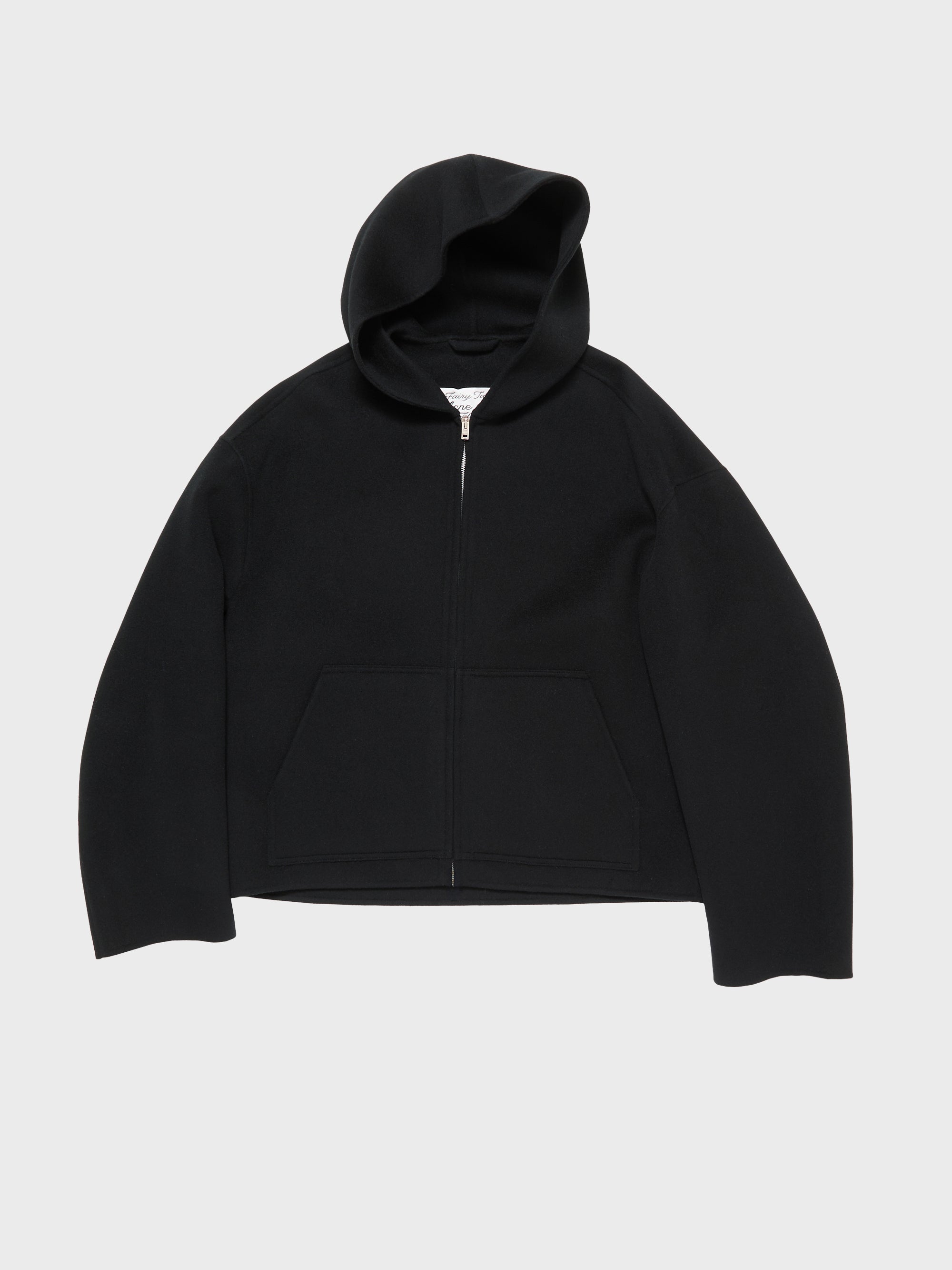 Denne jakke er fremstillet i en kashmirblanding med børstet finish for ekstra blødhed. Den har hætte, forlommer i kængurustil og lynlåslukning foran