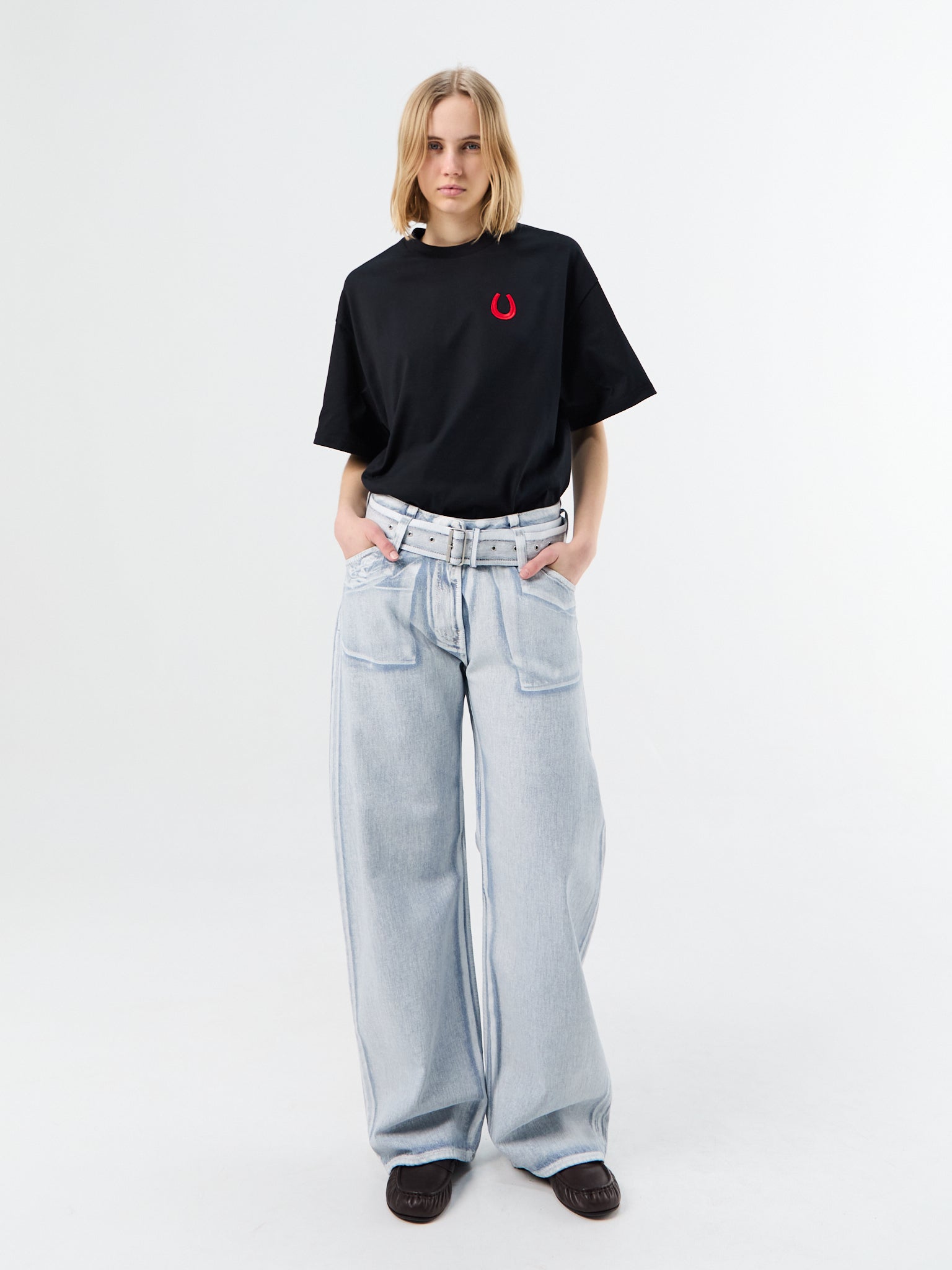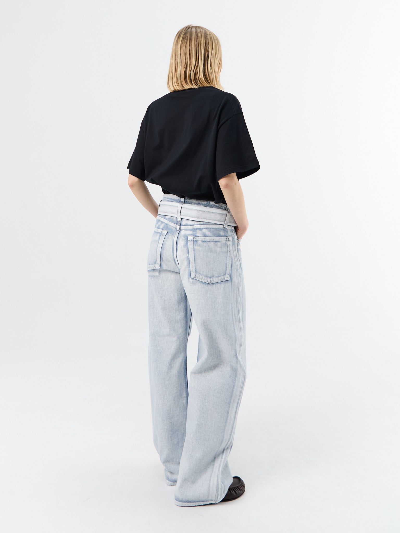 Jeans lavet af stift bomuldsdenim i en blå og hvid behandling. Silhuetten er designet til at sidde i en mellemhøj talje med et afslappet, lige ben i pasformen