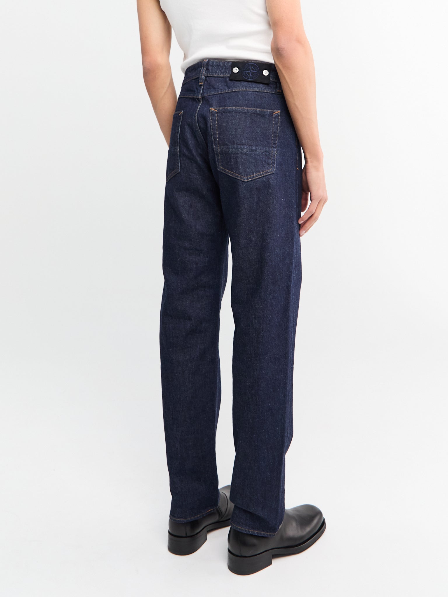 Fremstillet af holdbart bomuld med en blå indigo-vask, har disse bukser et lige ben og klassisk fem-lomme-design. De er afsluttet med Stone Island-mærket bagpå og tilbyder en enkel og alsidig stil, der kombinerer praktisk funktion med elegant design.