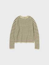 Shetland Wool Cashmere Rib Knit P/O i Ivory Stripe