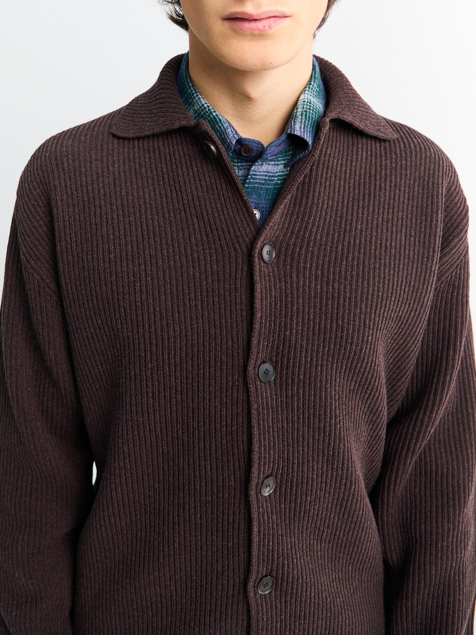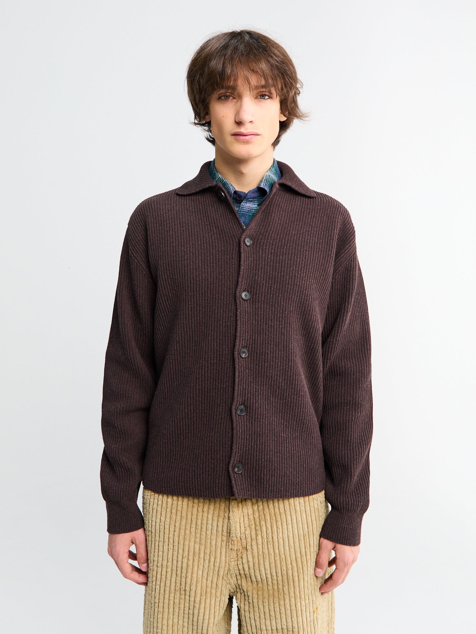 Super Fine Wool Rib Knit Skjorte Cardigan i Top Brun