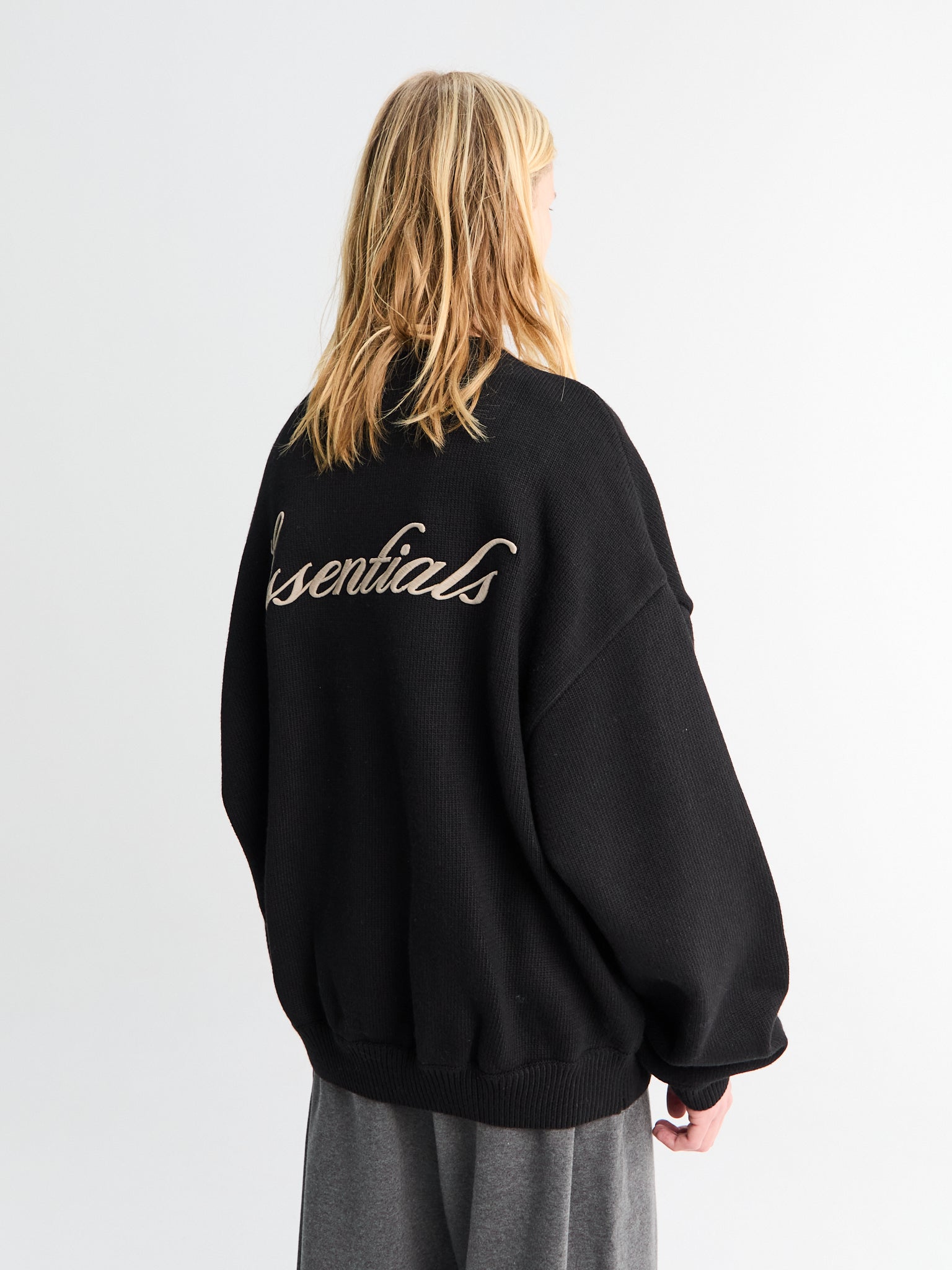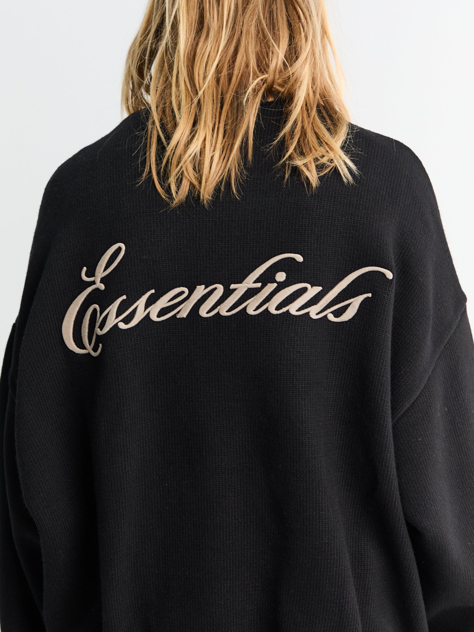 Waffle Crewneck er strikket af en blød vaffelstrik med droppede skuldre for et afslappet fald. Detaljer inkluderer ribstrikkede manchetter og taljekant. En Fear of God Essentials gummibelagt etiket er syet i nakken.