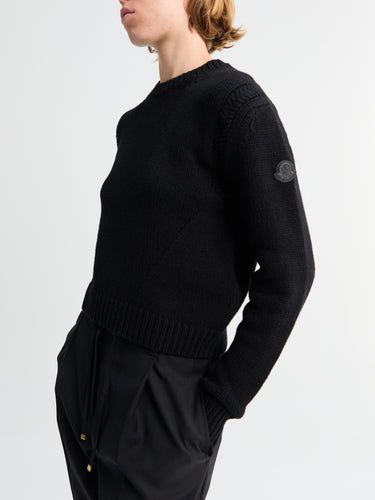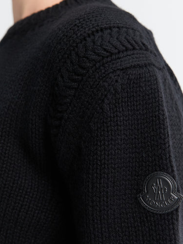 Crew Neck in Black is crafted in a wool, cashmere blend and designed in a regular fit. The crew neck features knitting details at the sholders and a leather logo at the left shoulder.