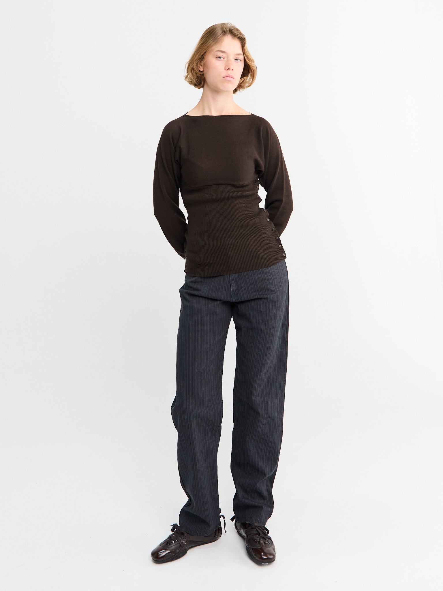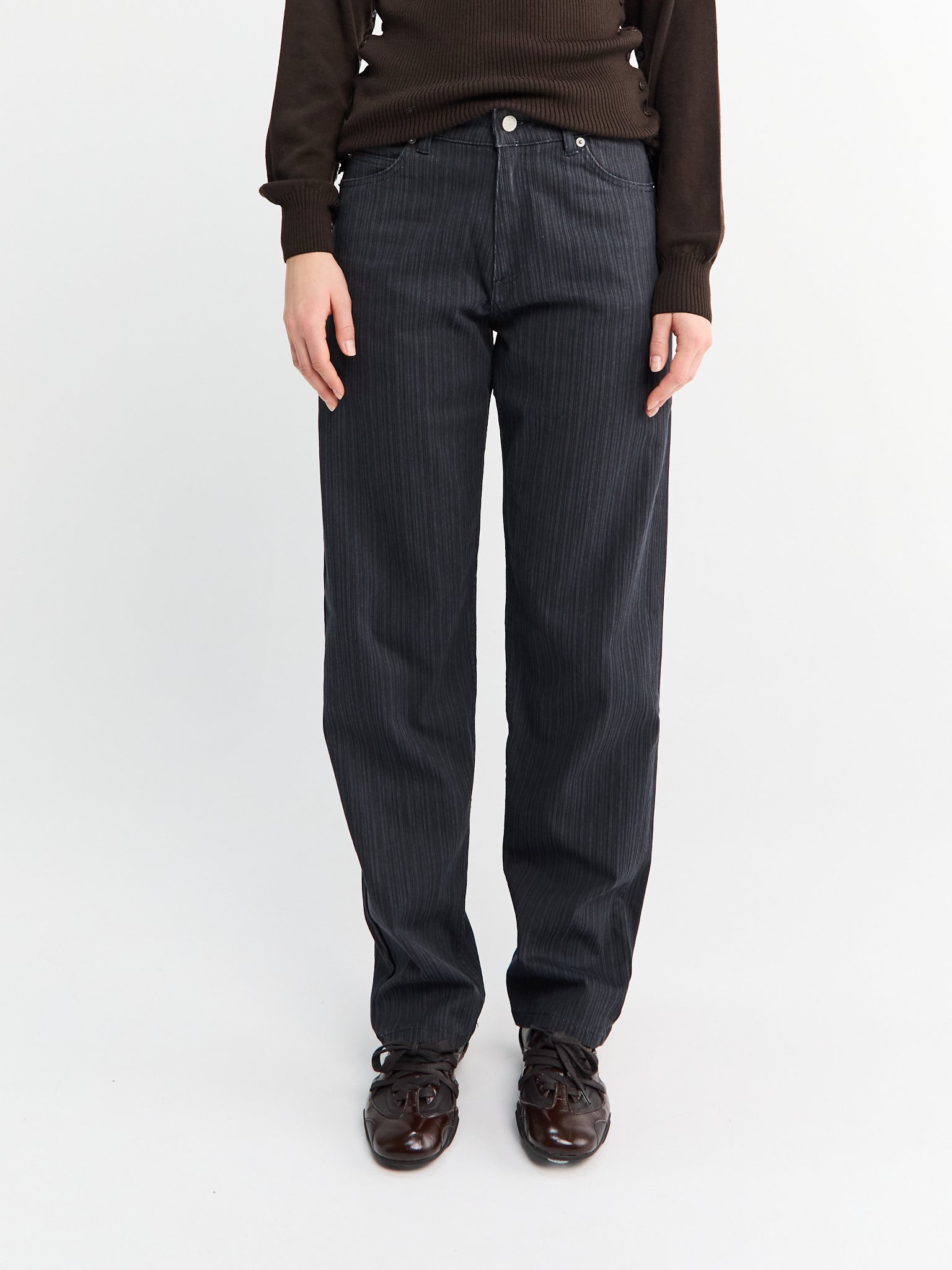 These grey striped pants are made from cotton fabric with a bit of stretch to ensure comfort throughout the day.