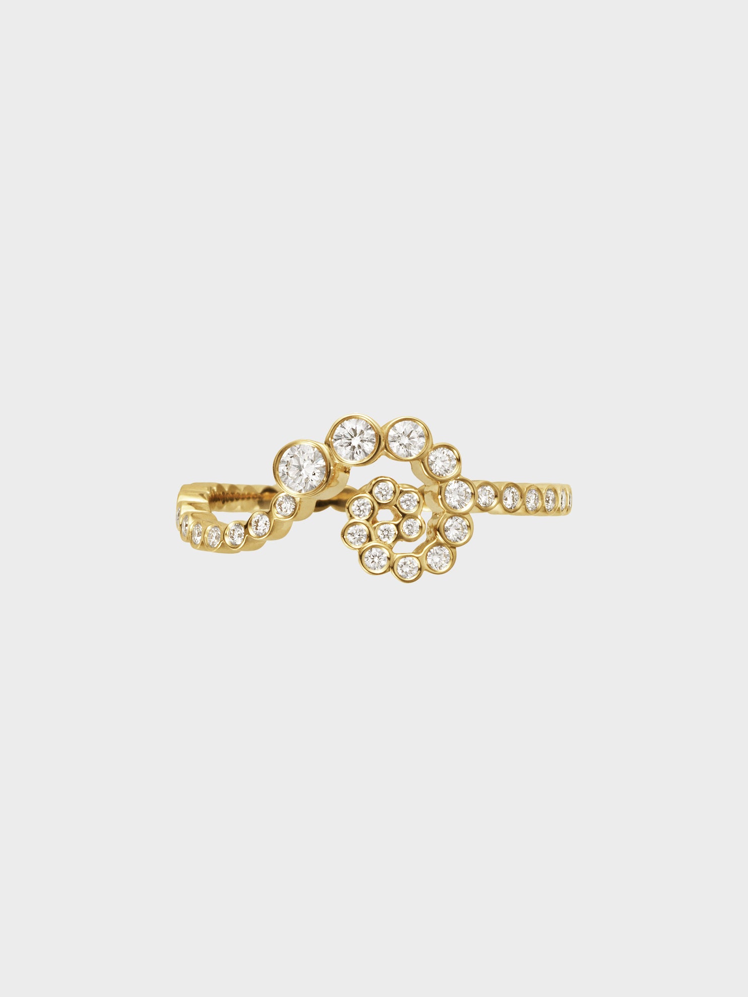 A new interpretation of Sophie Bille Brahe's classic Escargot styles. The Rêve Escargot ring features a delicate swirl of graduating diamonds connecting into a row of diamonds continuing around the band.