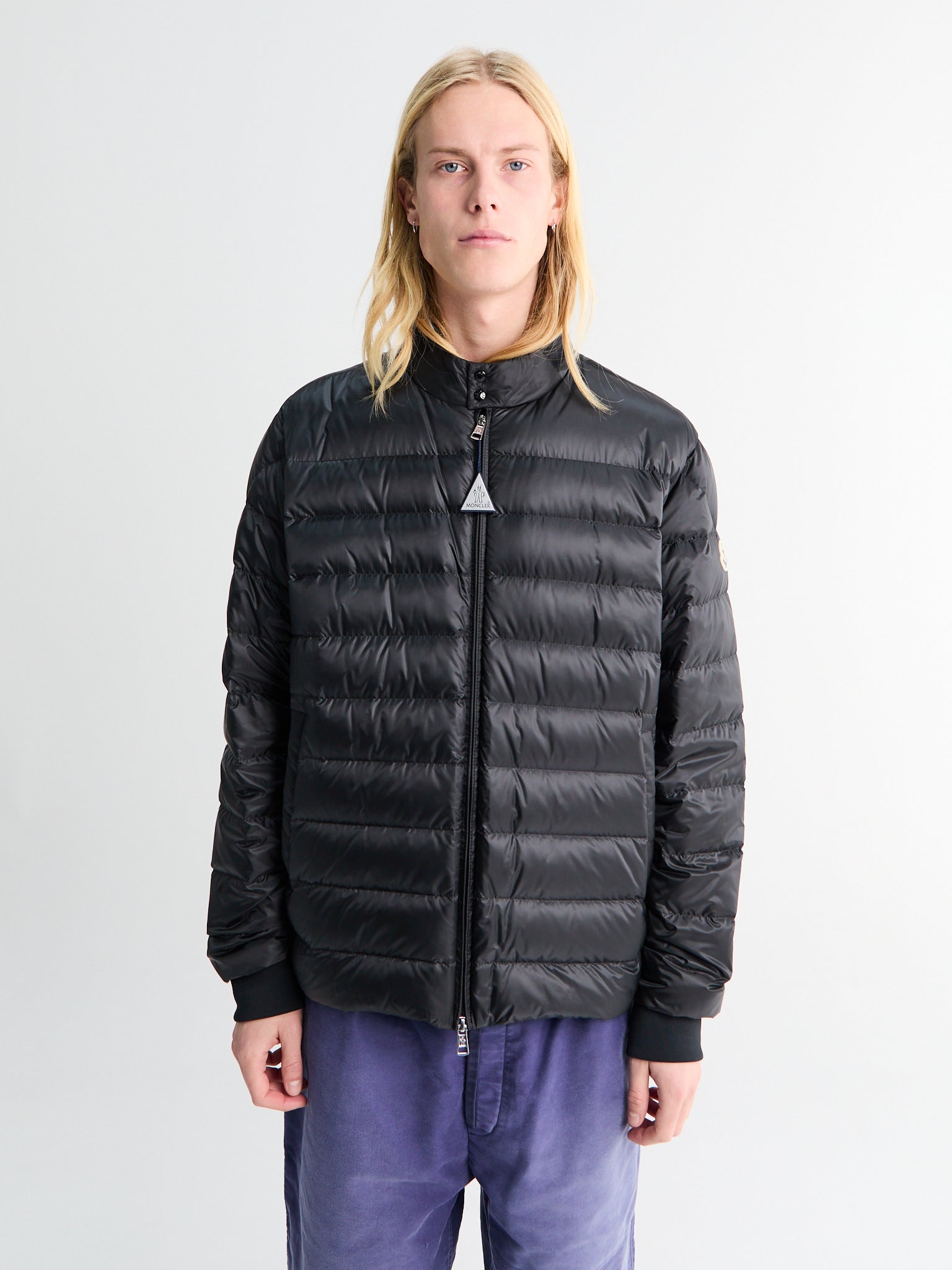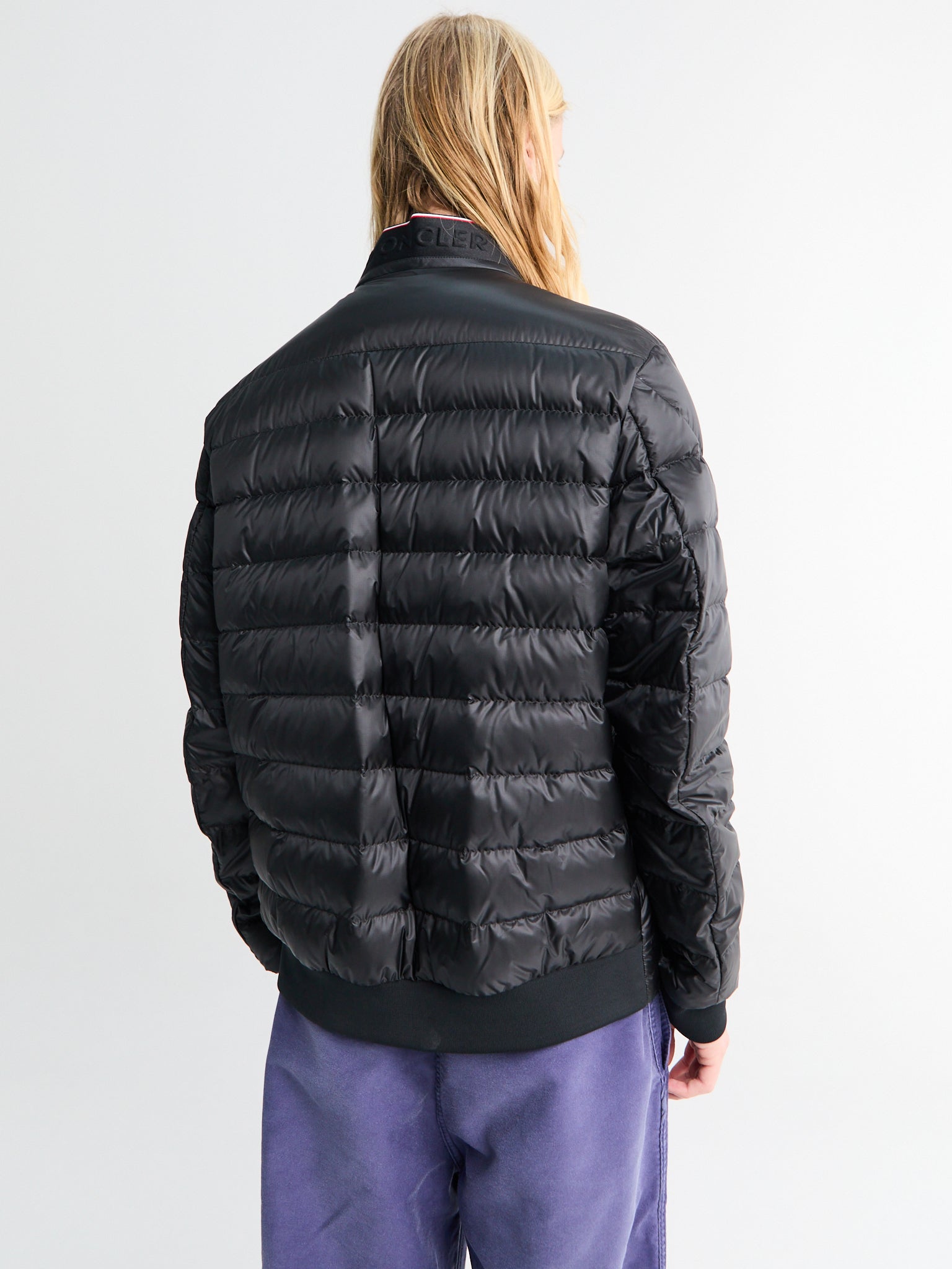 Crafted from nylon boudin-quilting. The contemporary biker-inspired silhouette offers a modern edge, while the distinctive tricolour trim at the collar