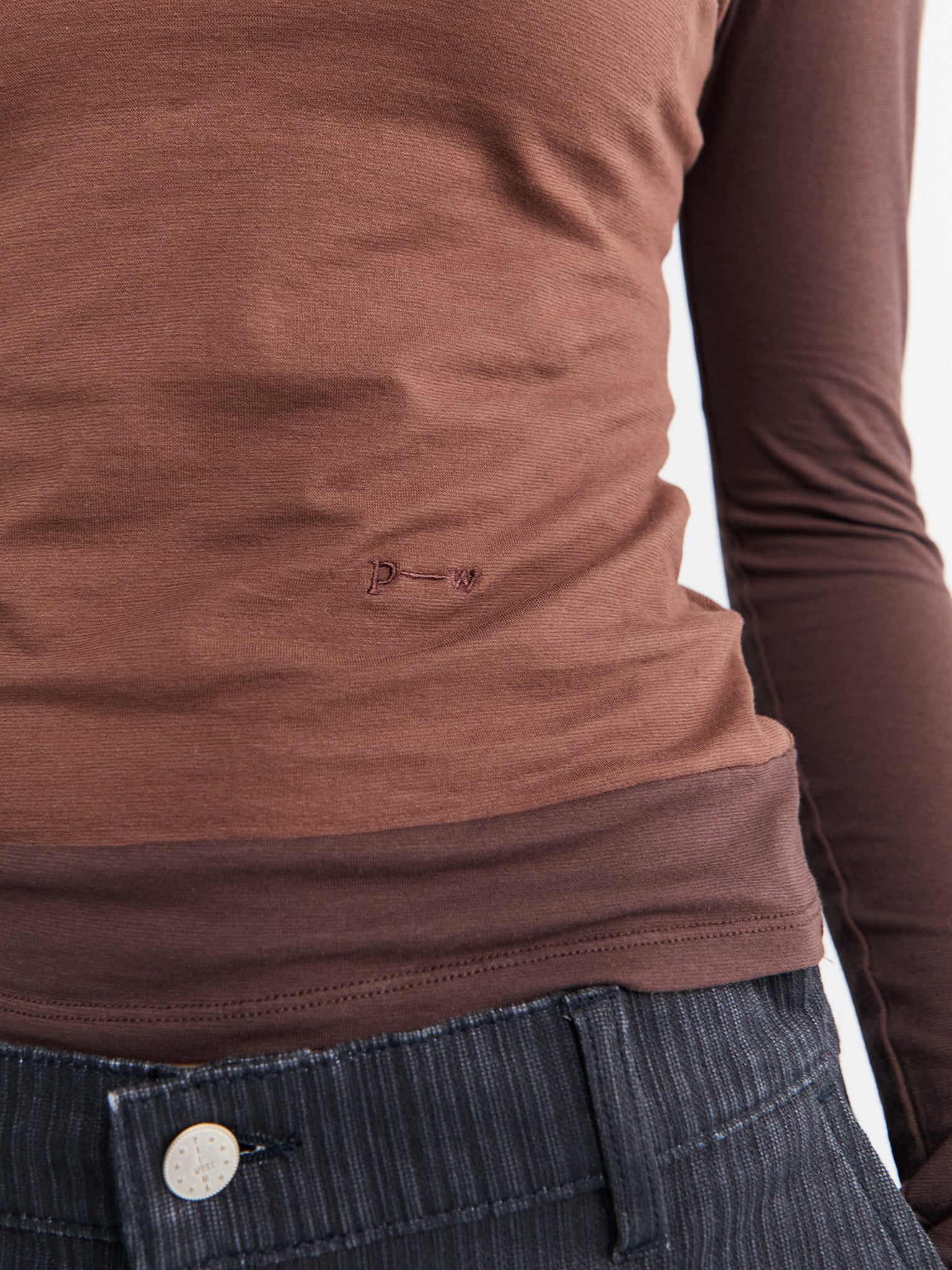 This brown crew-neck long sleeve T-shirt from Paloma Wool is made from organic cotton for comfort and sustainability. Its panelled design and straight hem offer a clean, simple look suitable for everyday wear. The round neck and long sleeves provide a classic fit