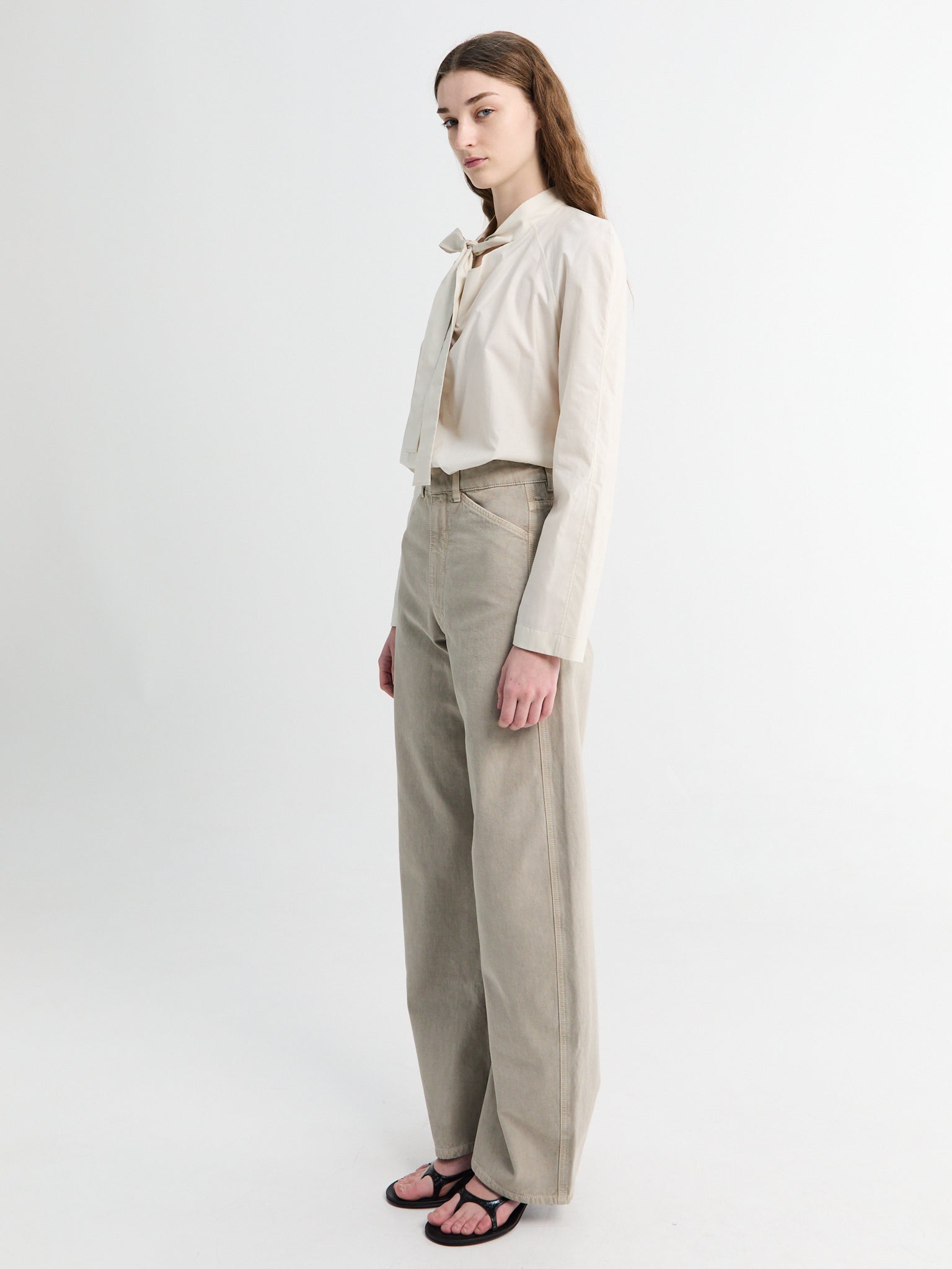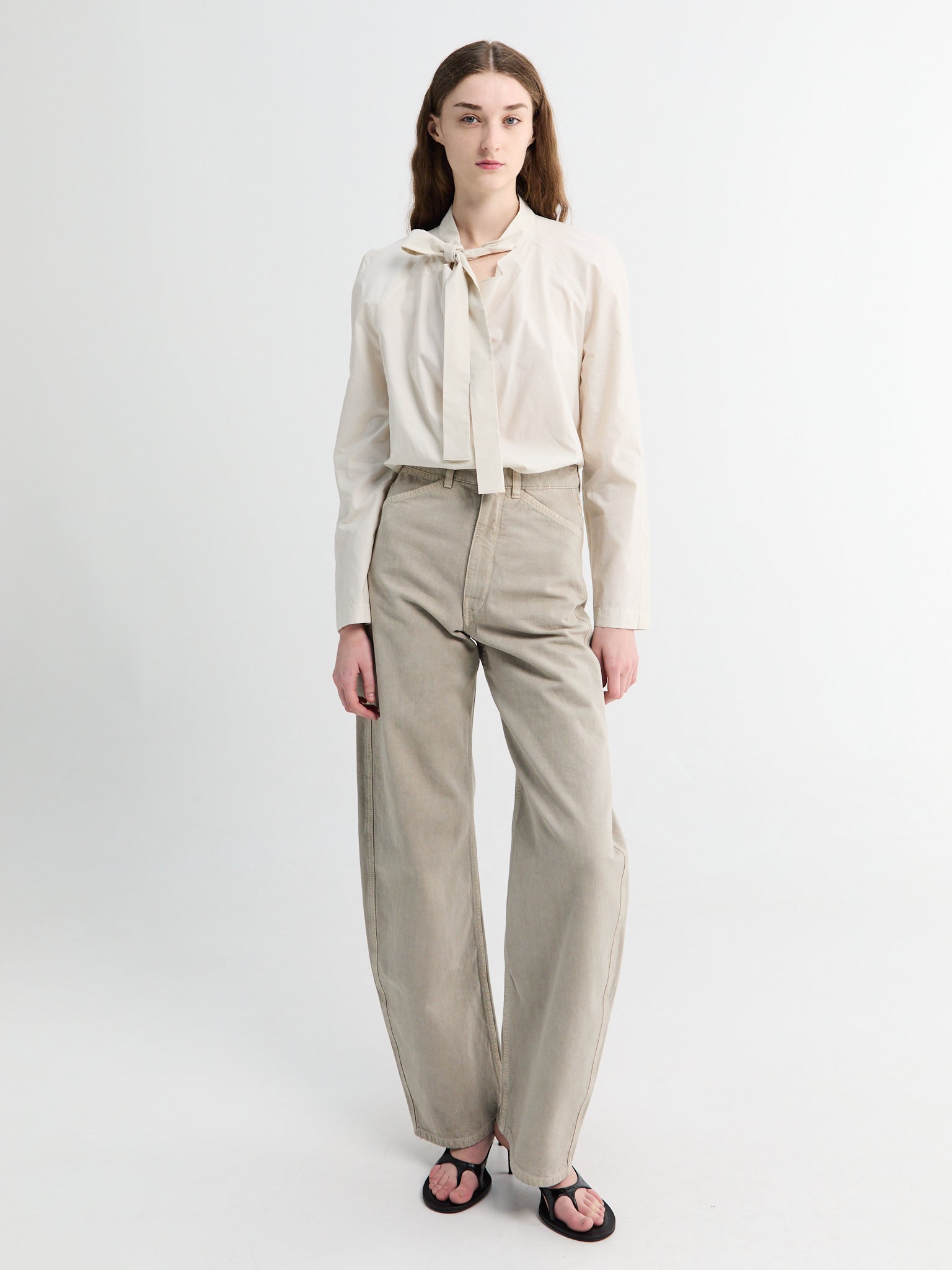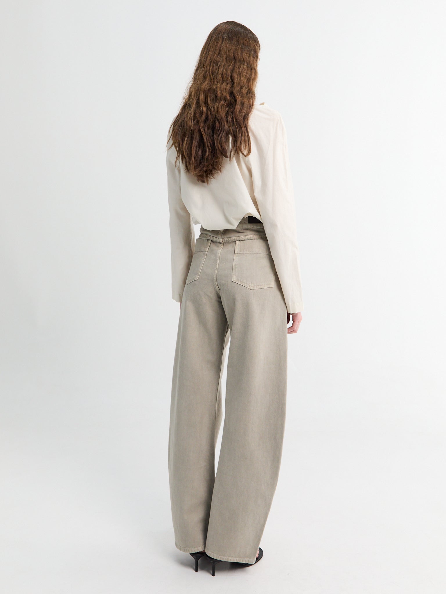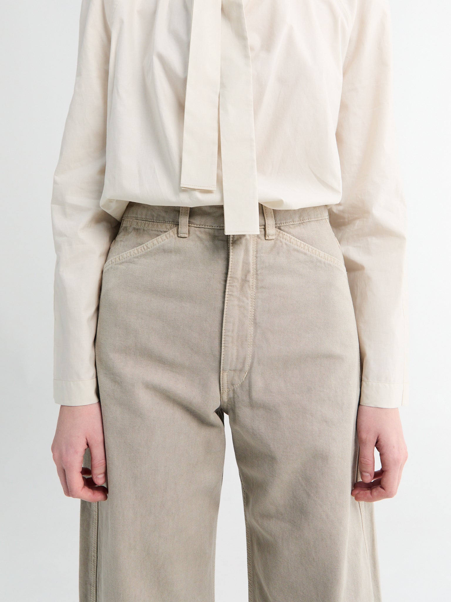 High Waisted Curved Pants in Moonstone