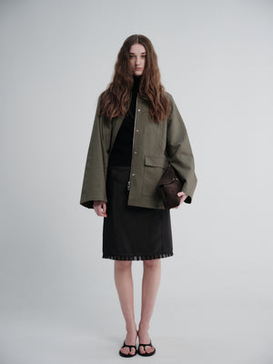 Split Jacket in Antique Mudd Coated Sateen