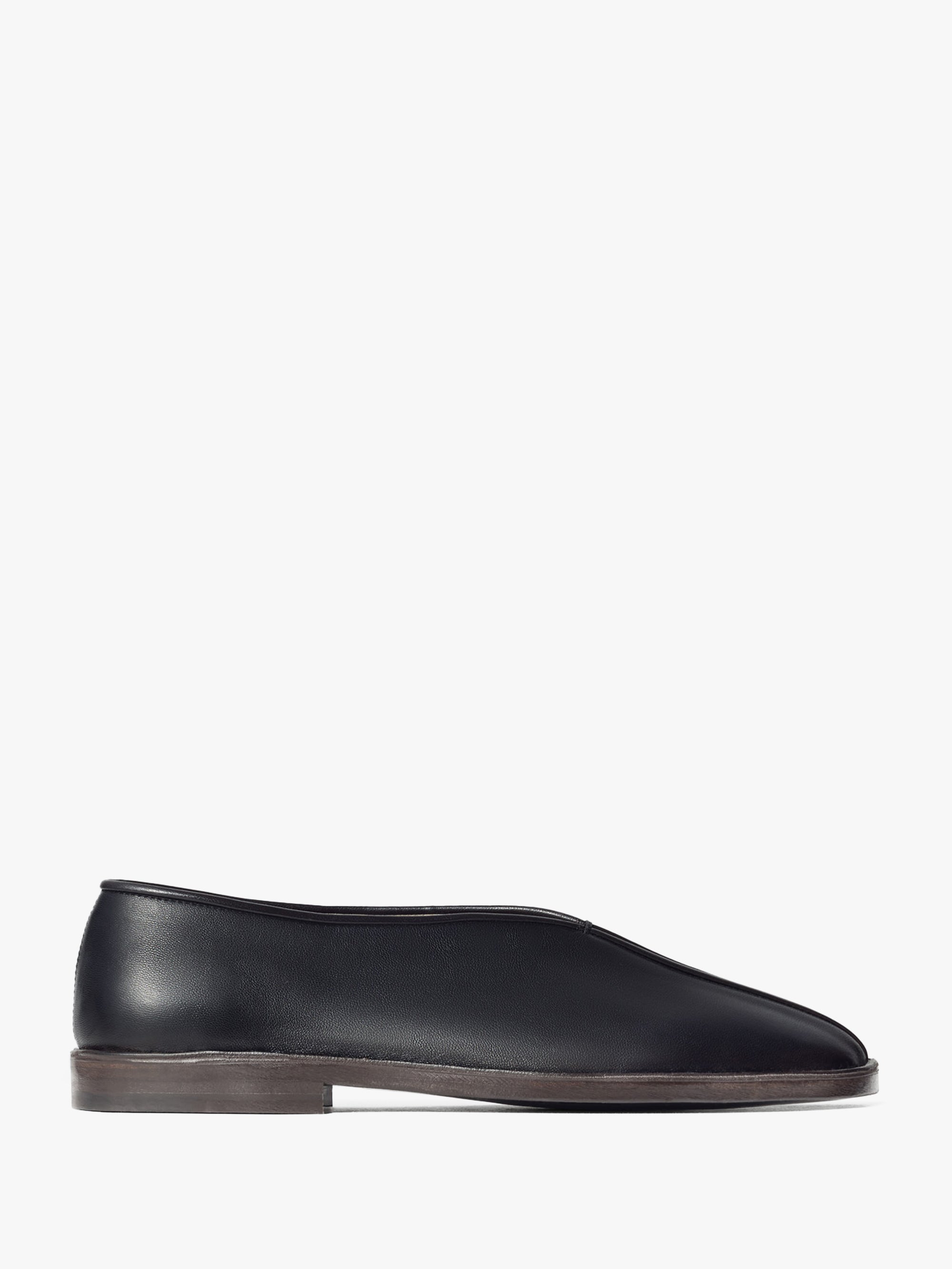 Flat Leather Piped Slippers in Black and Dark Chocolate