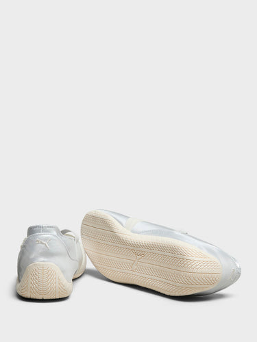 The PUMA Speedcat Ballet Satin Wns combines the original slim driving shoe design with a ballet flat-inspired slip-on style. It features a shiny satin upper, elastic bands for easy fit, rounded toe, flat heel, textile lining, and rubber outsole for comfort and durability