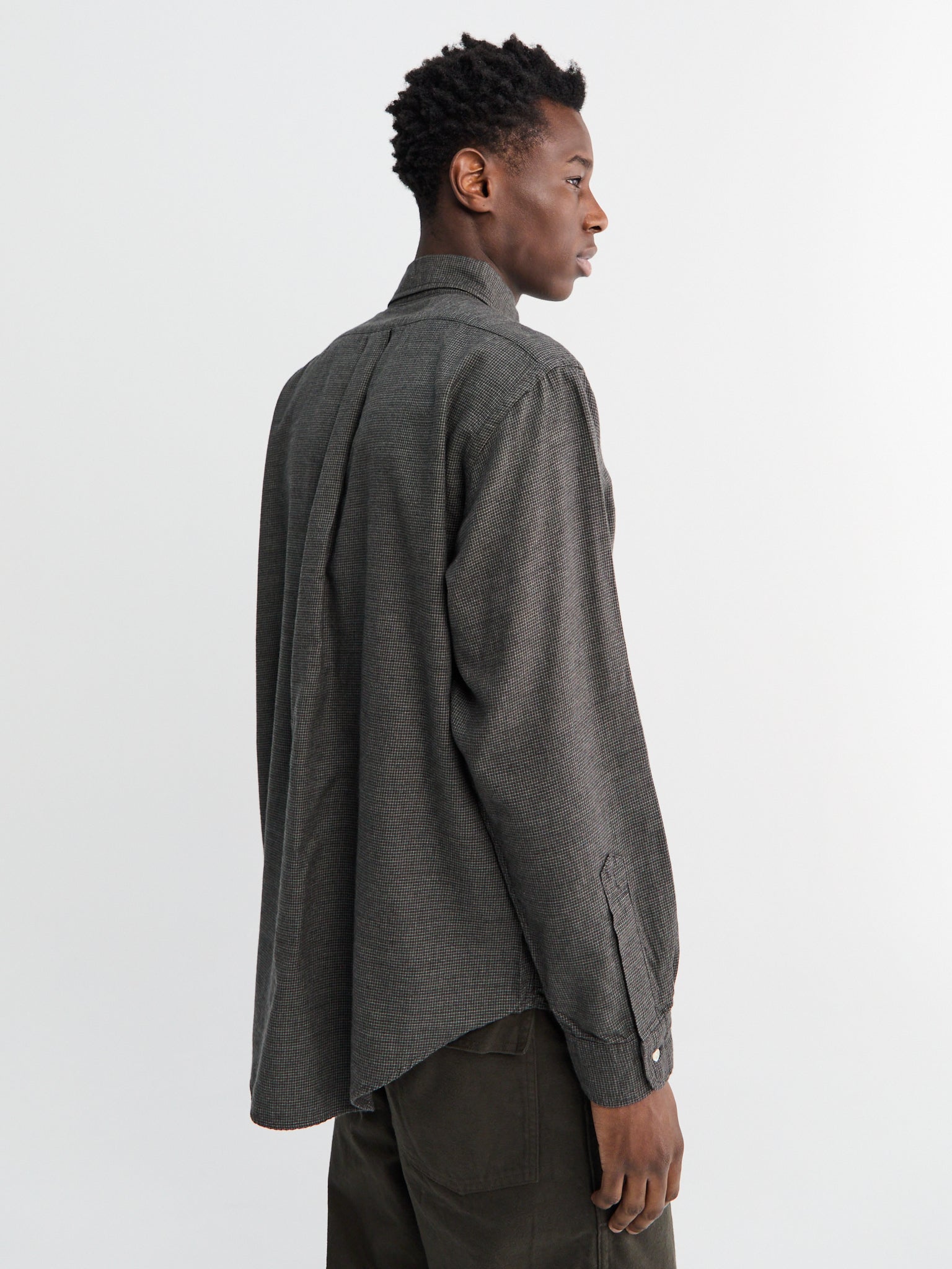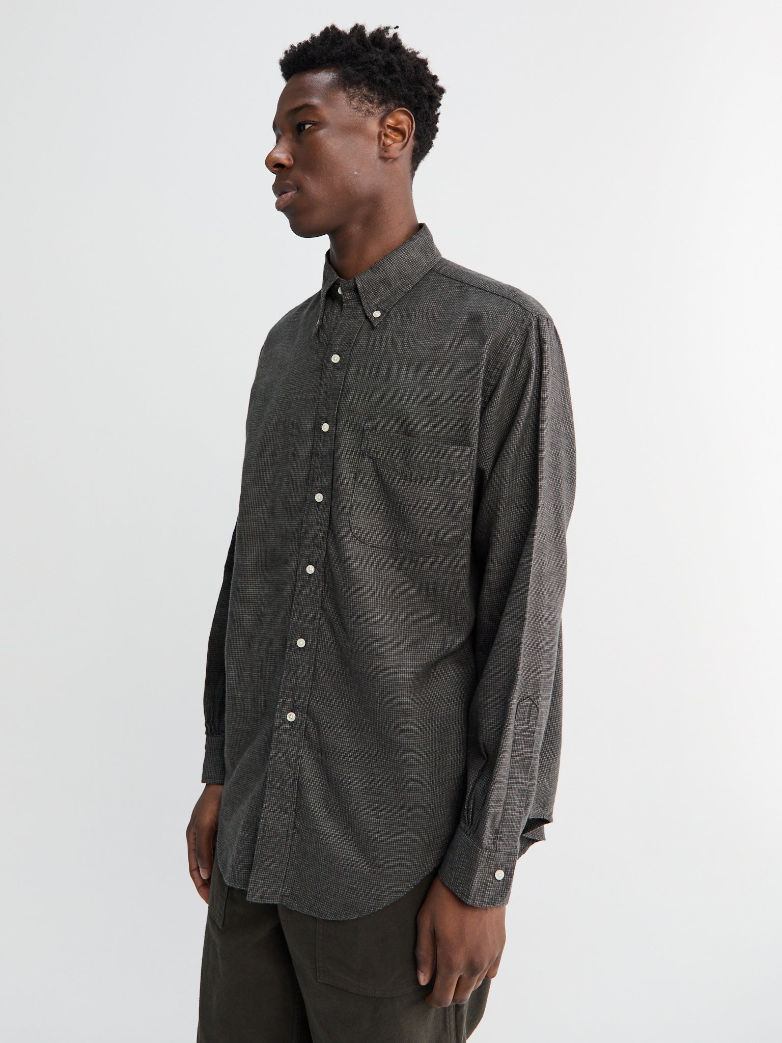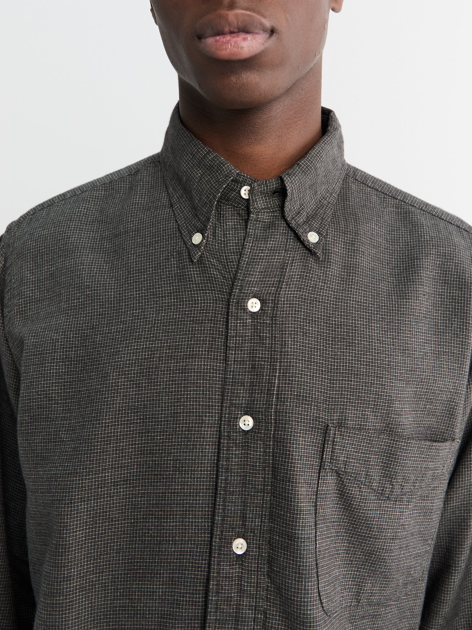 Subtly Brushed Mini Check Shirt in Charcoal