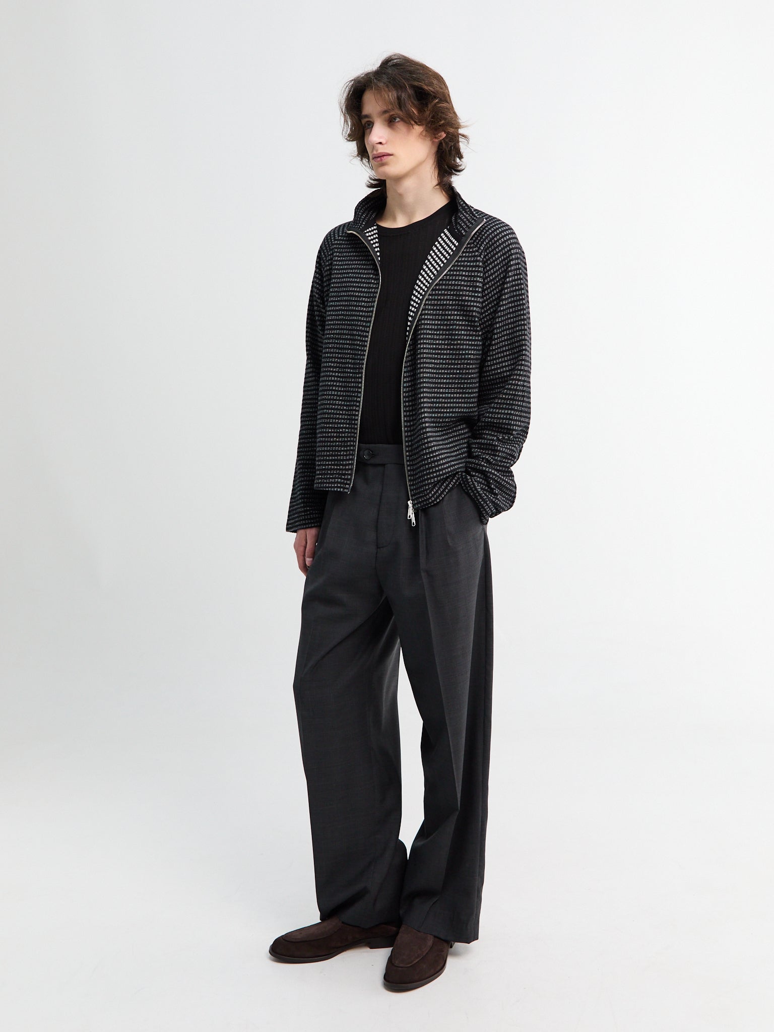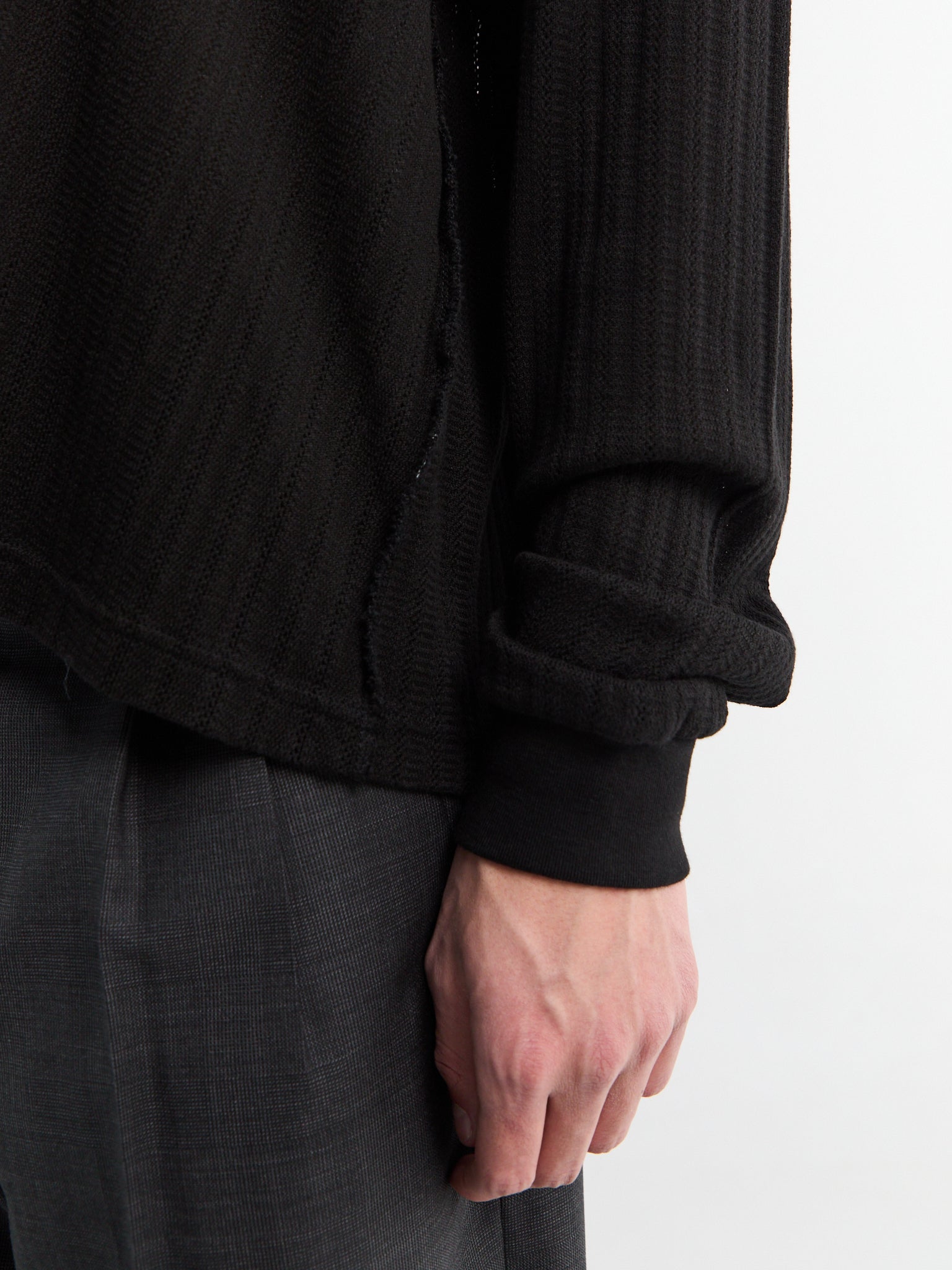 This long sleeve T-shirt offers a relaxed fit, crafted from a custom black lace stripe textile.