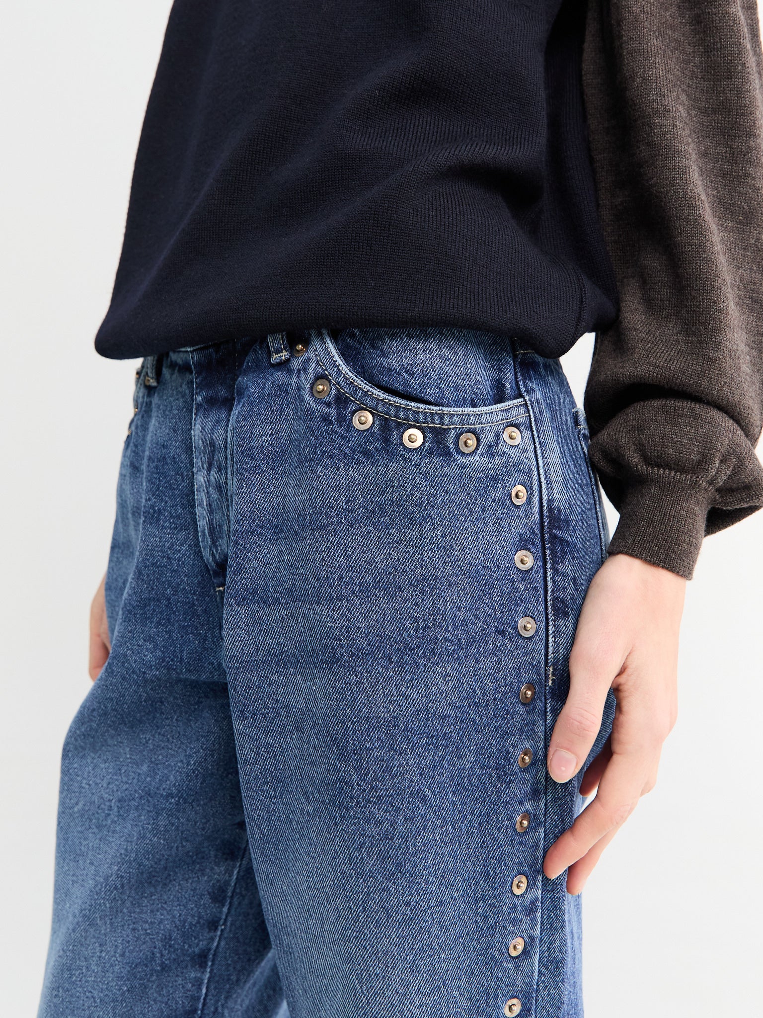 Studded boyfriend denim pants, cut to a loose fit with a low waist