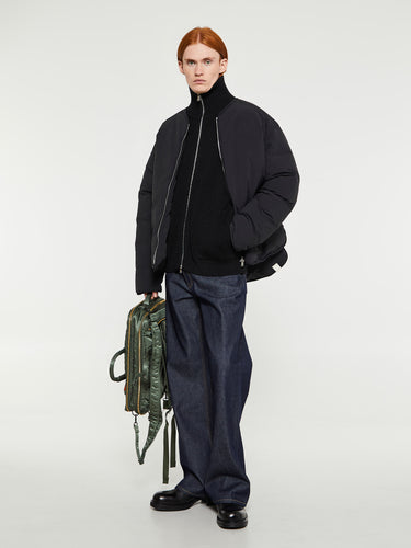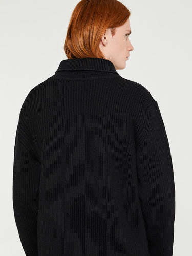 Navy Full-Zip Pockets Knitwear in Black