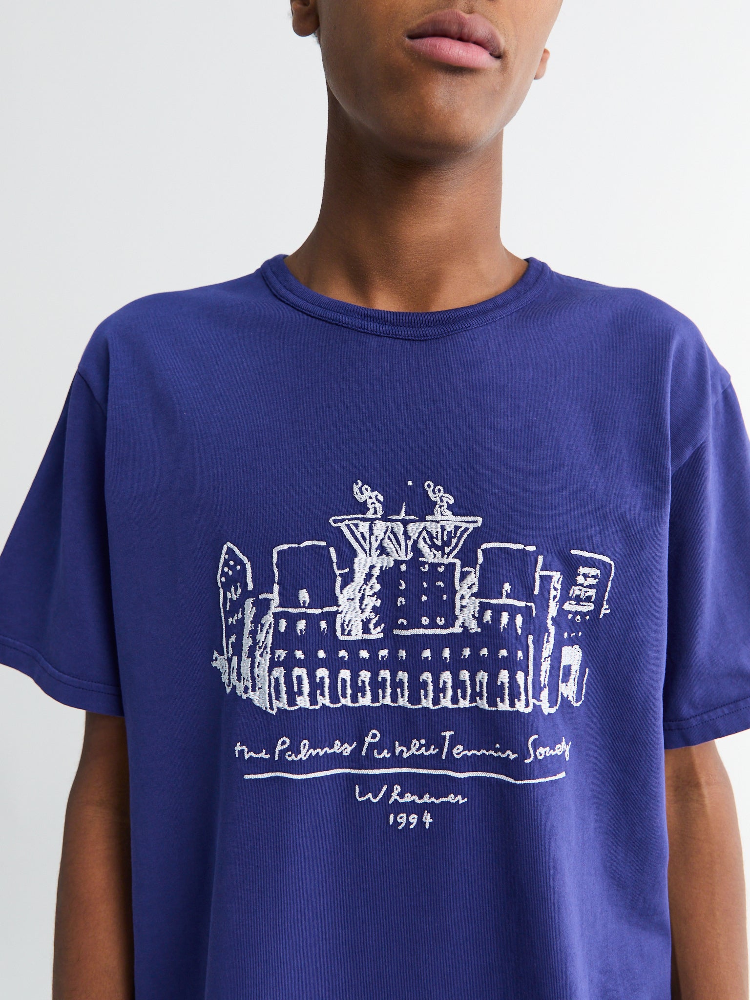 This blue t-shirt is designed in a relaxed fit and features a graphic print at the chest inspired by public tennis culture. Crafted from soft cotton, it offers everyday comfort with a casual, expressive look.