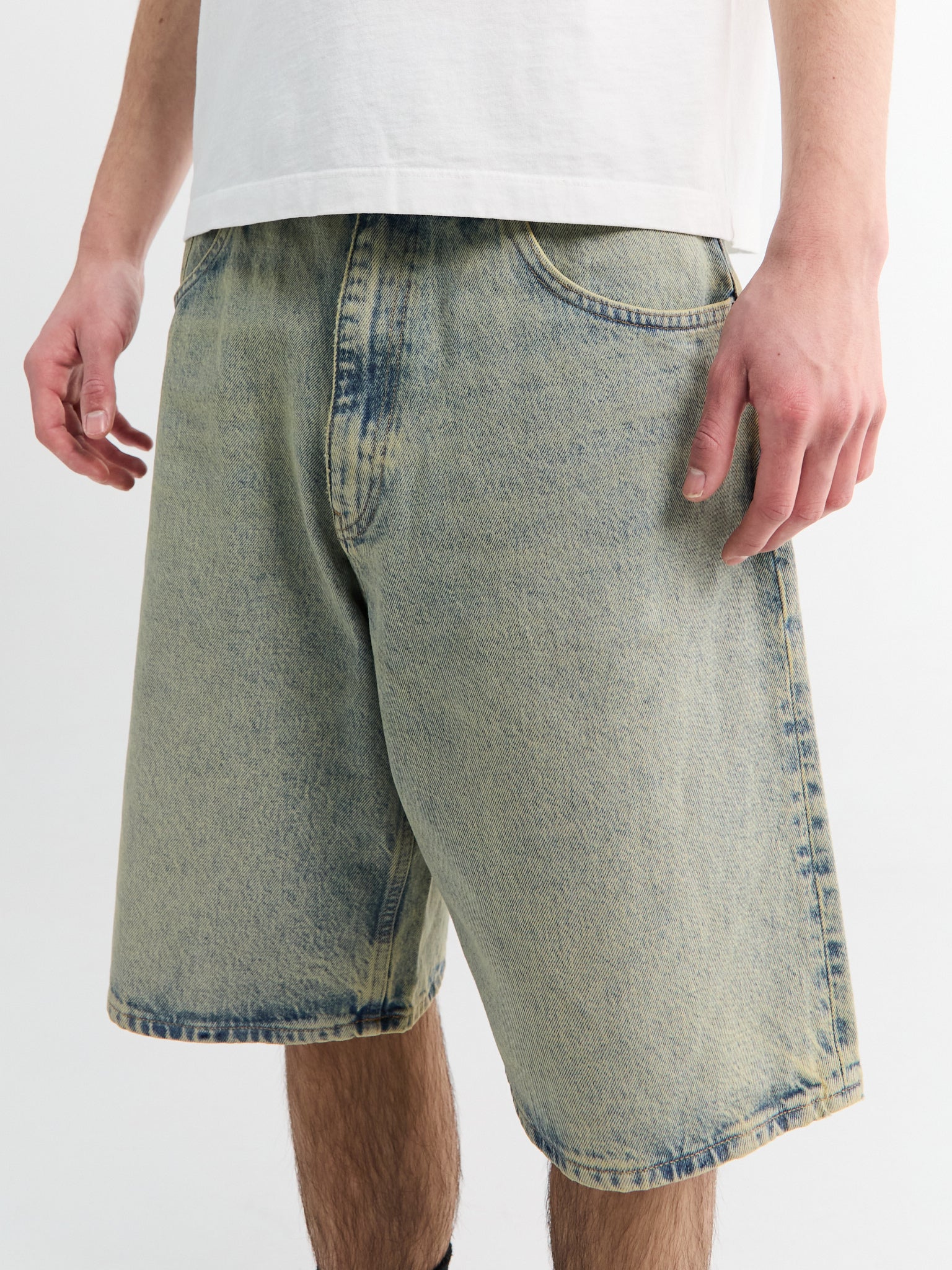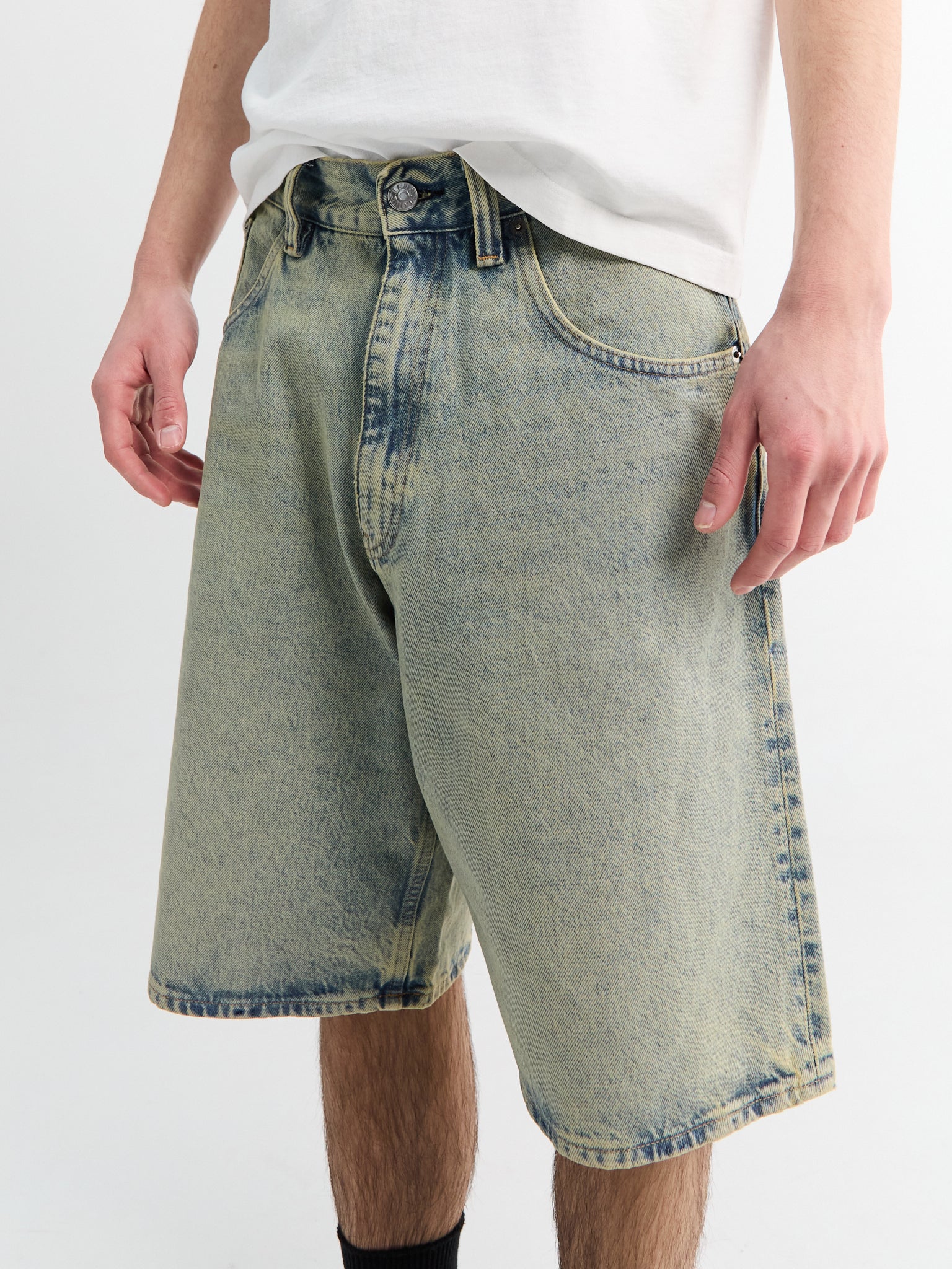 The Super Wide Shorts are crafted from denim treated with a light vintage dust wash. Cut for a relaxed and intentionally oversized silhouette, the design is completed with classic five-pocket styling.