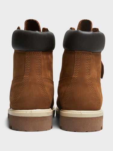 Timberland's Premium 6-Inch Boots in Dark Wheat offer waterproof performance and instantly recognizable styling. With 400 grams of PrimaLoft insulation, a padded collar, a rubber lug outsole, and an anti-fatigue footbed, these boots keep you warm, comfortable, and surefooted in any weather.