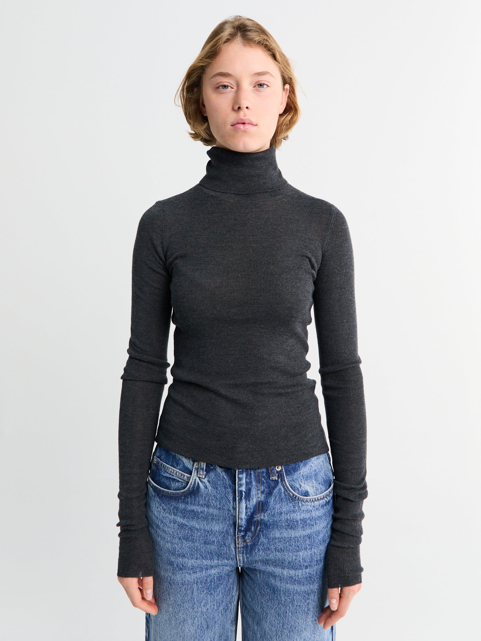 Utica Thin Turtleneck Sweater in Dark Grey Melange