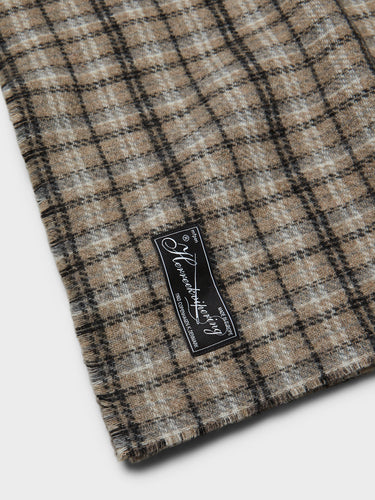 This double-sided wool scarf features a check pattern and tasseled ends.