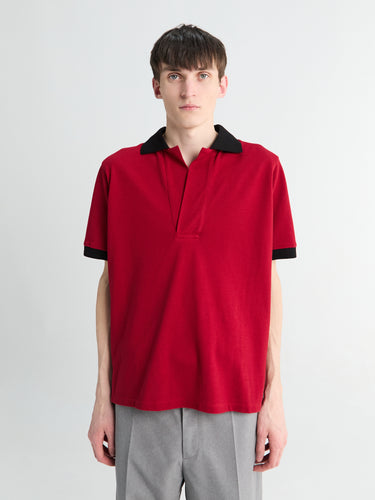 Vic No-Button Piquet Polo in Red