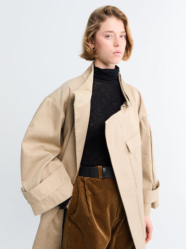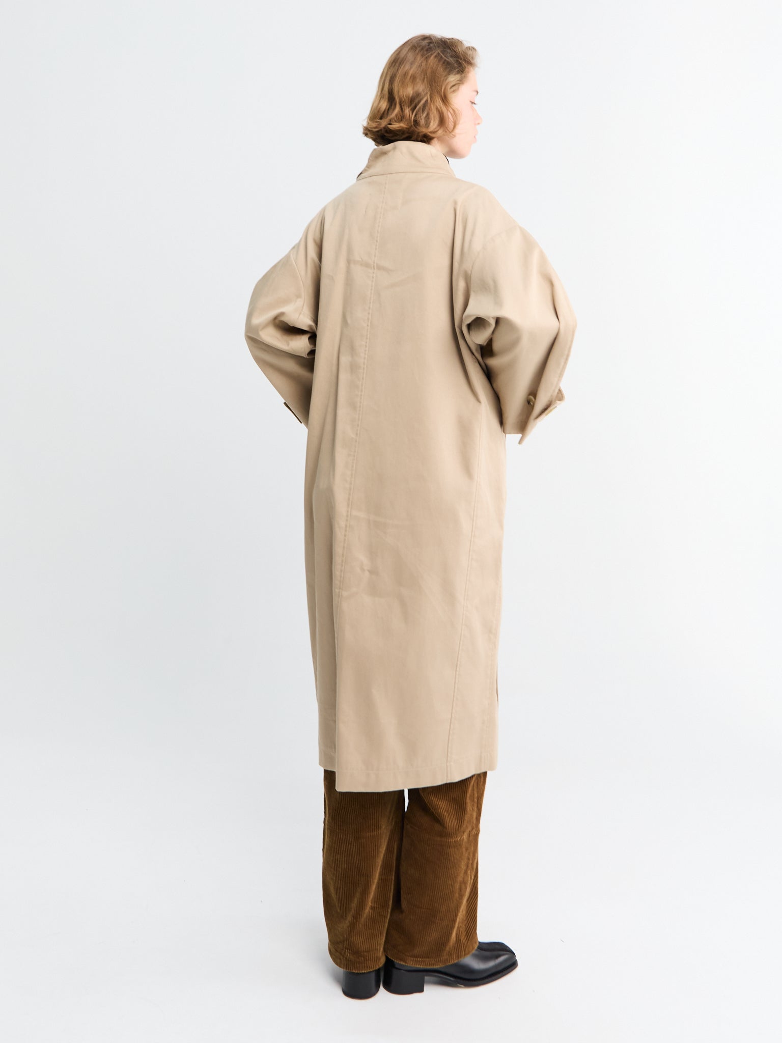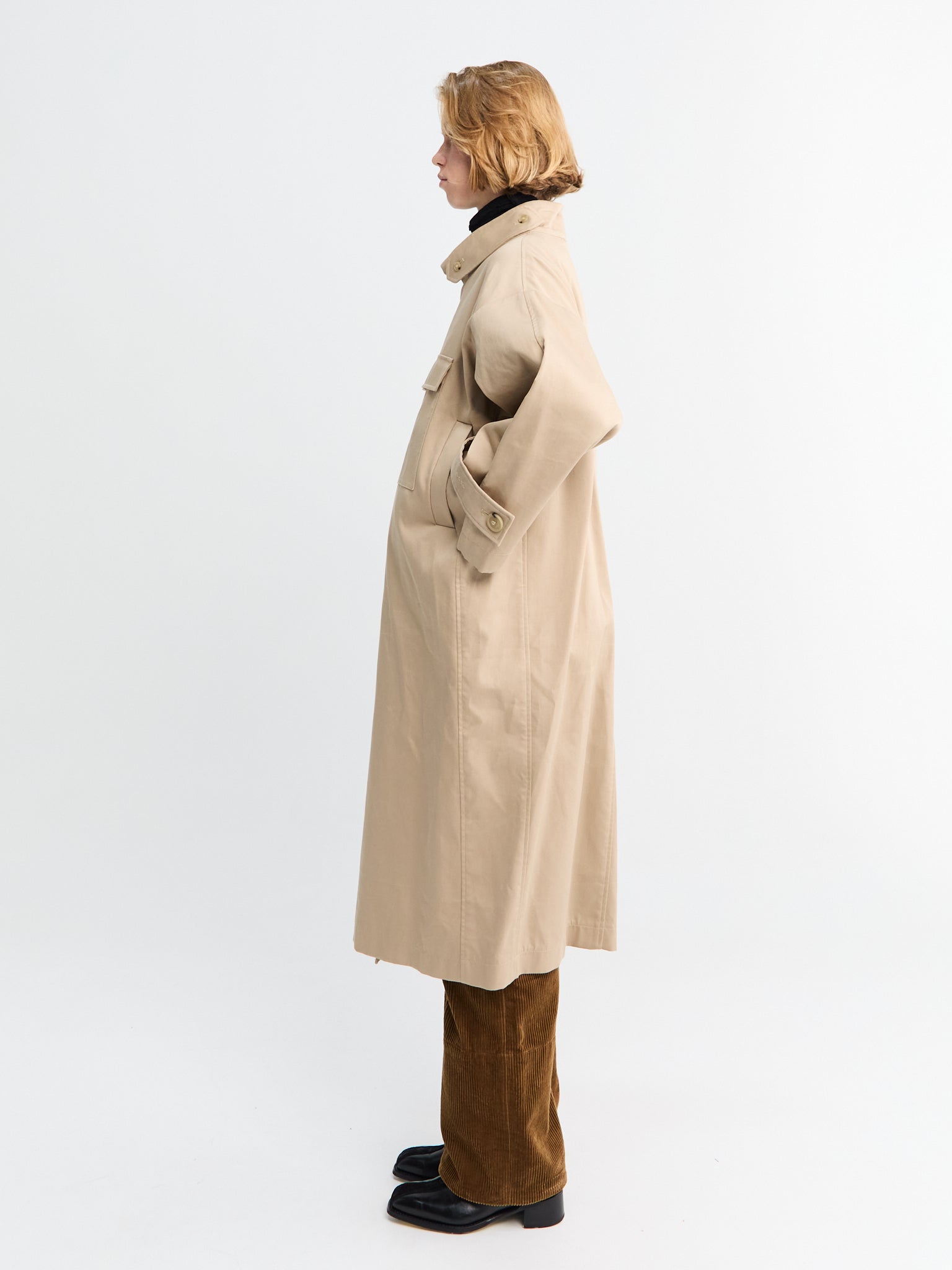 Stay protected from the rain with AF Agger's Water Resistant Coat in Cool Beige. Made from 100% water resistant cotton twill, this coat features a matching corduroy inner collar, side closure with zip and horn buttons, and multiple pockets for convenience. Based on a classic sea officer jacket.