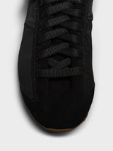 Made with a soft, durable nylon upper, these shoes feature a leather lining and an almond-shaped toe for a refined silhouette. The rubber outsole showcases a mix of round and square patterns.