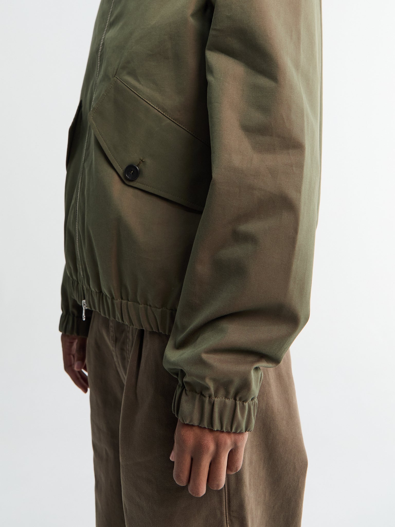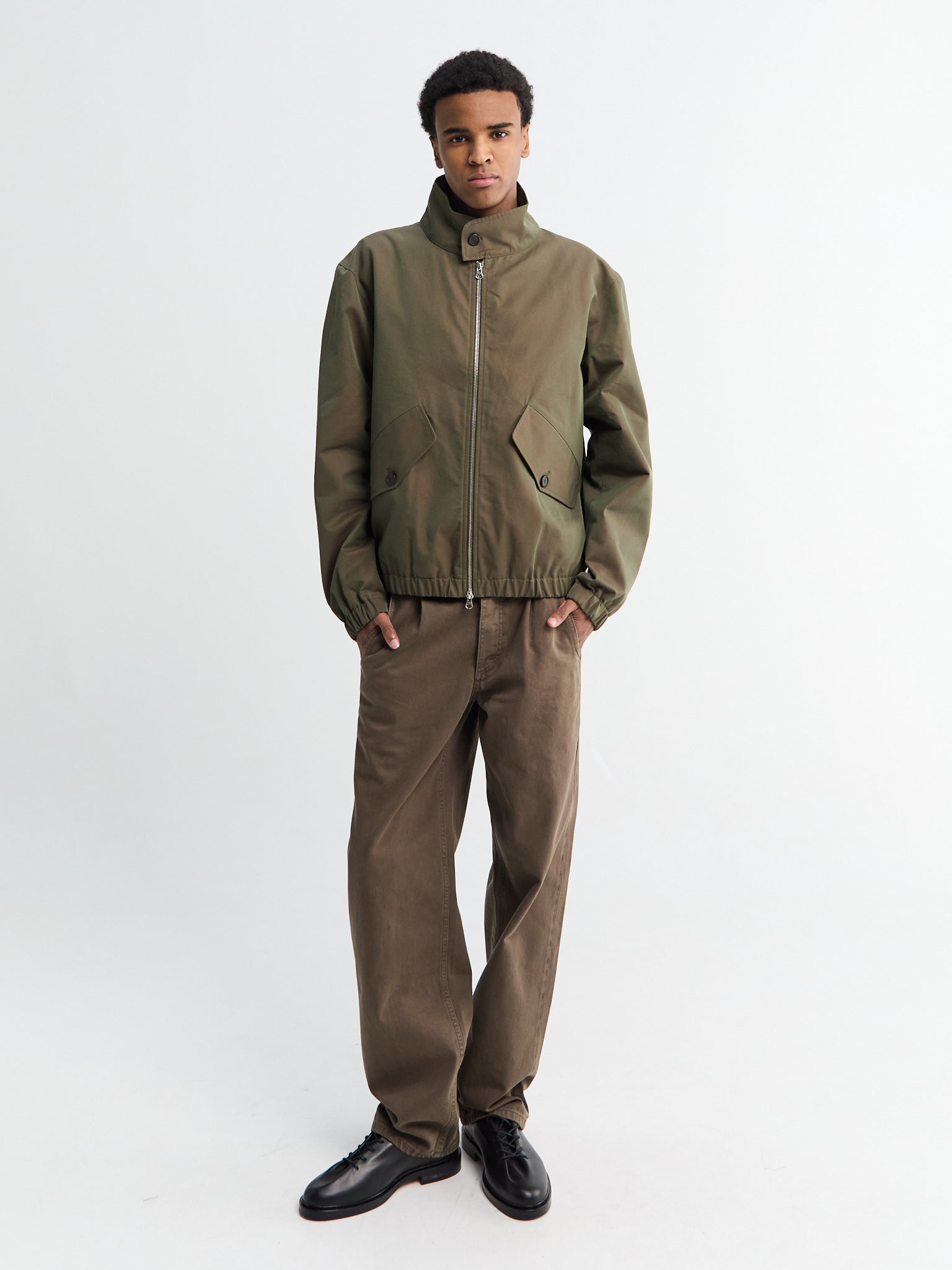 Drawing from timeless blouson design, this jacket combines sustainable Italian deadstock cotton with contemporary ease. The two-way zip front and traditional collar offer practical versatility.