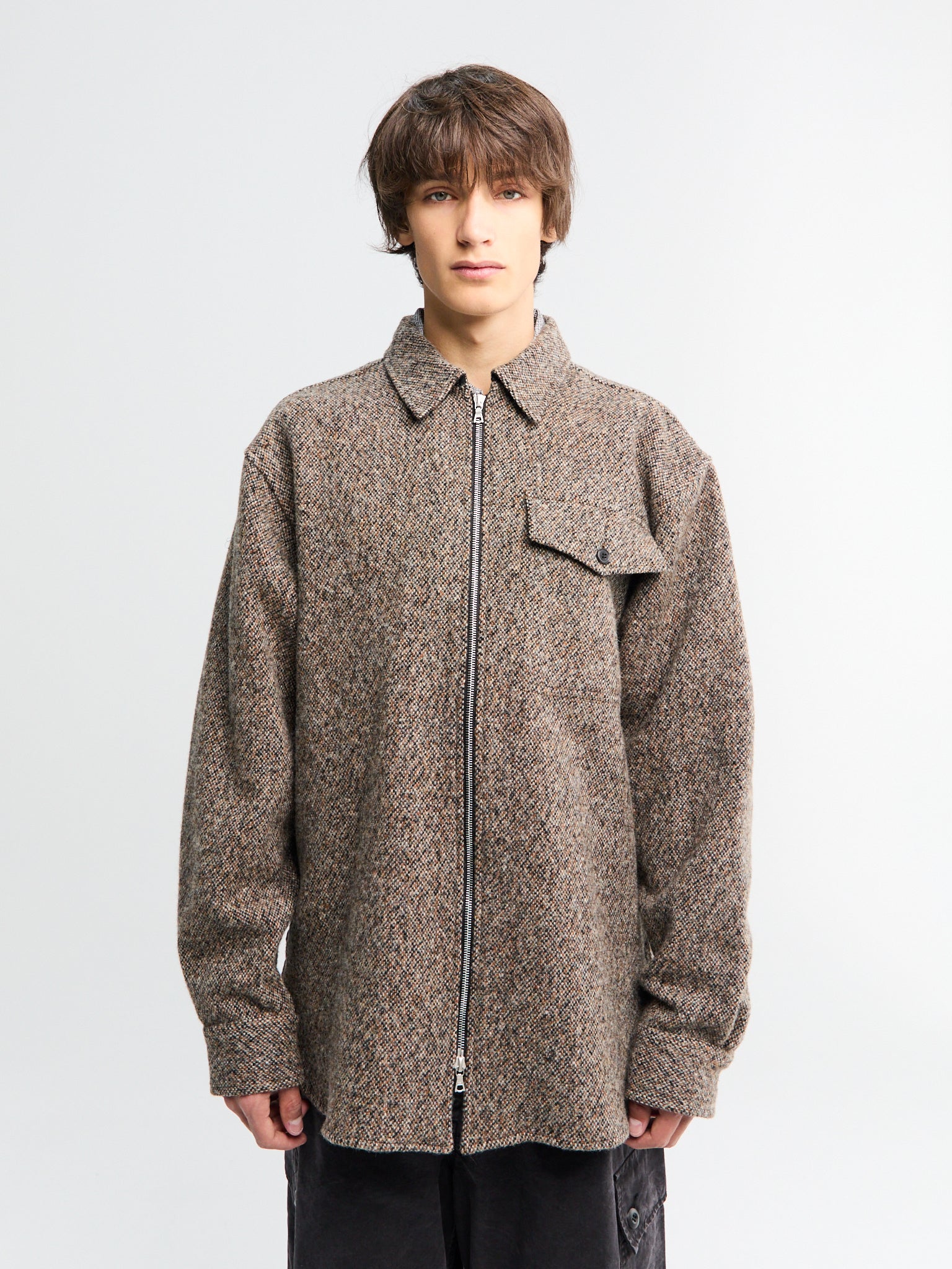 Ole Oversized Wool Stripe Shirt in Seal Brown